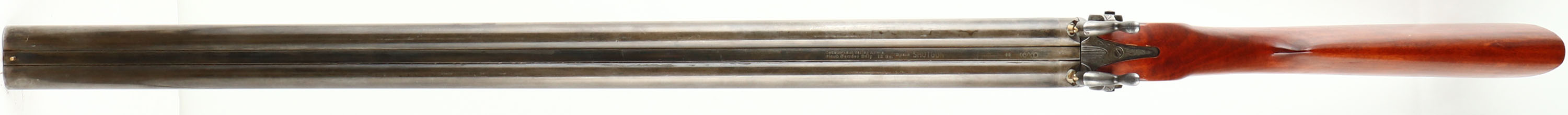 Connecticut Valley Arms, Muzzleloader Shotgun, CAL: 12GA, MFG: 1980's, SN: 16740, Blackpowder Percussion Shotgun, 28'' barrels. The original straight grip wood stock is excellent. There are contusions & handling marks to the finish. The metal blue finish has mostly toned to a brown/gray patina, with remnants of original blue. Both sides of the receiver display a simple waterfowl engraving, with floral accents. Bores are excellent. Solid rib holds a single front bead. No buttplate. LOP: 13 5/8''. Blackpowder, No FFL Req. - Value: 100 to 250