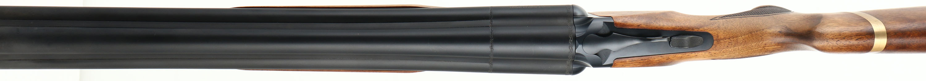 CASED NEW Chiappa, Model Triple Threat, CAL: 12 GA, MFG: Modern, SN: TC01736, Break Action SxS+ Shotgun, 18 1/2'' barrels. The original checkered & flat pistol grip walnut stocks are mint, having a hand oiled finish. Decorative brass band around stock is unusual, but factory standard. The original metal finishes are mint. Bores are mint, with screw in chokes. Comes with two additional chokes. Extractor. The top barrel holds a fiber optic front sight. Single non-selective mechanical reset single trigger system. Manual Safety. Sling studs. Buttstock carries a solid recoil pad. LOP: 14 1/4'' overpad. Comes in its original hard case, with packaging, extra chokes, choke tool & 1/4'' ''T'' handle allen wrench. NOS, gun store inventory. A new & really cool self defense or multi use shotgun. MSRP: $2,097.00. FFL Req. - Value: 1000 to 2100