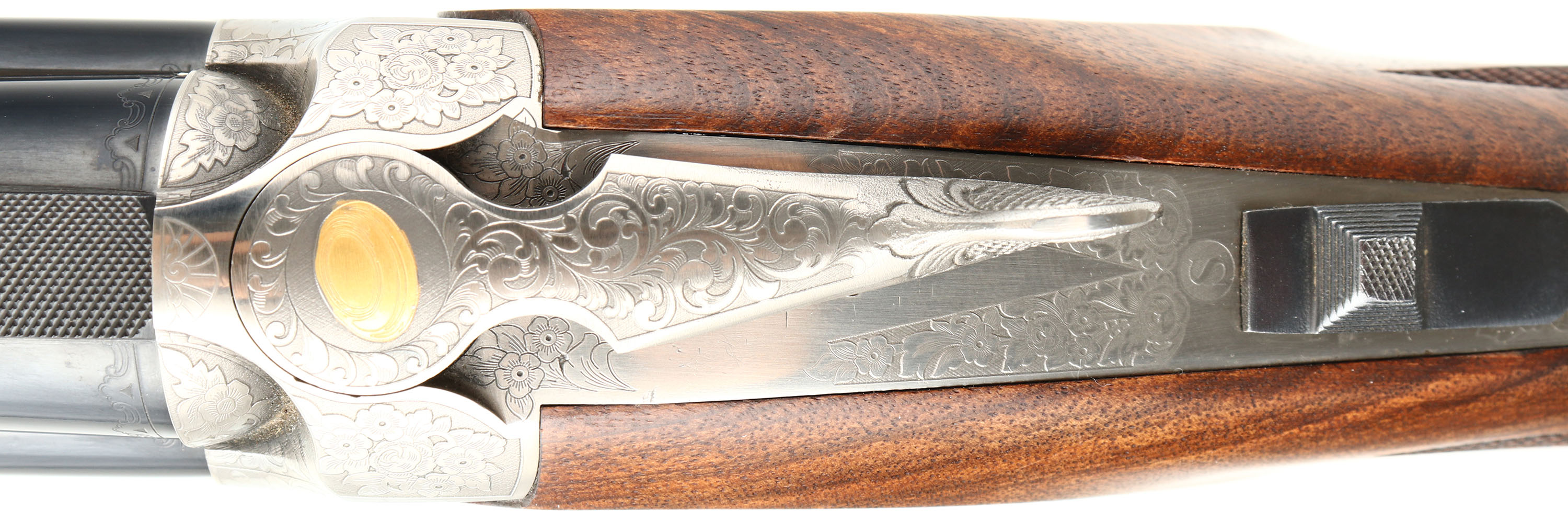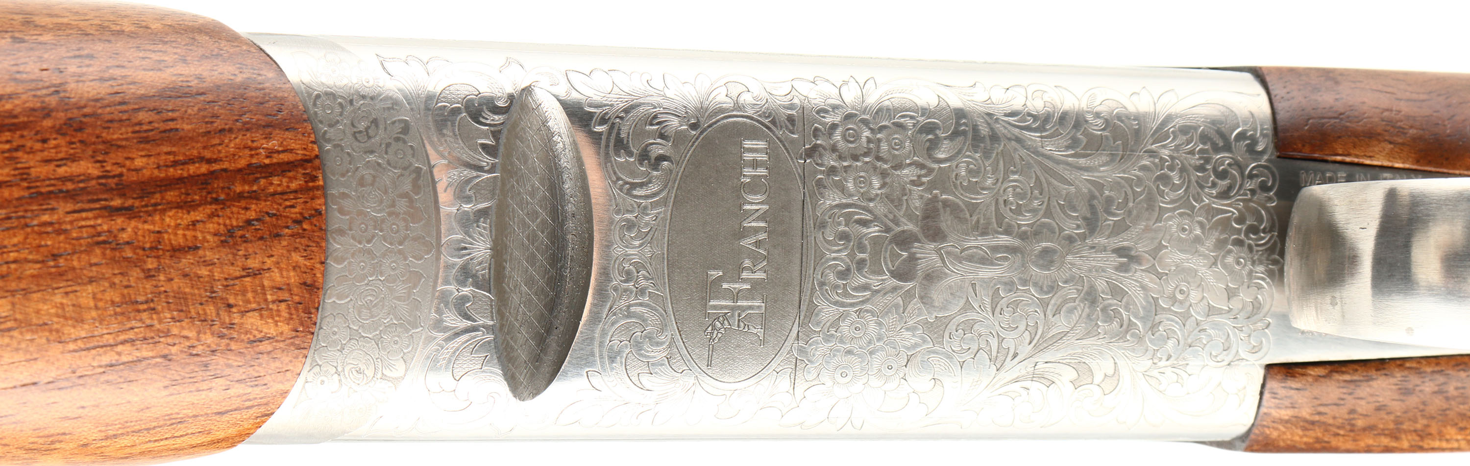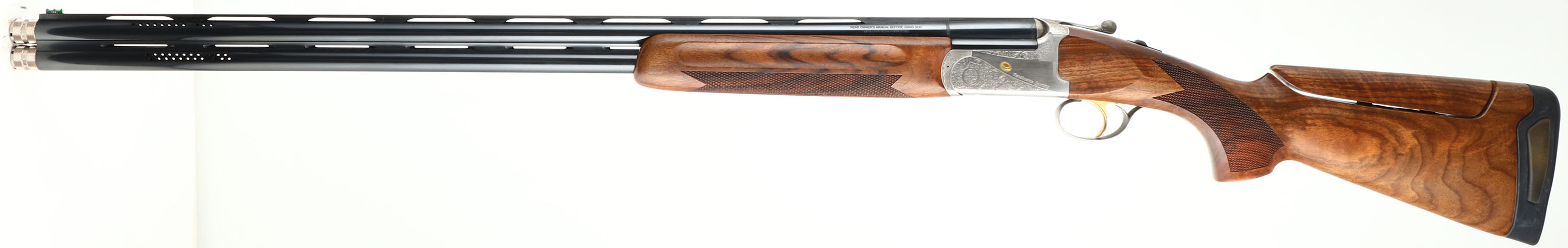 CASED Franchi (Benelli), Model Renaissance Sporting, CAL: 20 GA, MFG: Modern, SN: TB00085, Break Action O/U shotgun, 30'' ported barrels with extended, knurled choke tubes for easy fitting & removal. Franchi marketed this shotgun by saying: Its balance & swing blend in a way that makes the Renaissance Sporting an appealing over & under for clay target shooters at every level. The Renaissance Sporting combines the tradition & technology of Franchi shotguns. The receiver is enhanced with scroll engraving and gold embellishments. The stock, cut from highly figured select walnut and featuring cut checkering, sports a traditional oil finish to complement the beautiful grain pattern of the wood. The stock is further enhanced with an adjustable comb & Franchi's patented, recoil-reducing Twin Shock Absorber system. The original checkered & flat pistol grip wood stocks are excellent, as is the original finish. There is a bit of haze on the right side of stock due to storage. The metal blue finish rates 99% overall. The satin silver finish on receiver is excellent. Bores are excellent. The ventilated & matted rib holds a fiber optic front rail. Weighing in at 8 pounds, this Franchi shotgun uses an extra-strong, stainless steel box-lock action capable of handling a steady diet of high-brass target loads. Gold trigger. Comes in its original hard plastic case, with extra choke, choke tool, booklet & hang tags. An excellent overall & fantastic quality sporting shotgun. LOP: 14 1/2'' overpad, DAH: 1 7/8'', DAC: 1 3/8''. FFL Req. - Value: 1000 to 1800