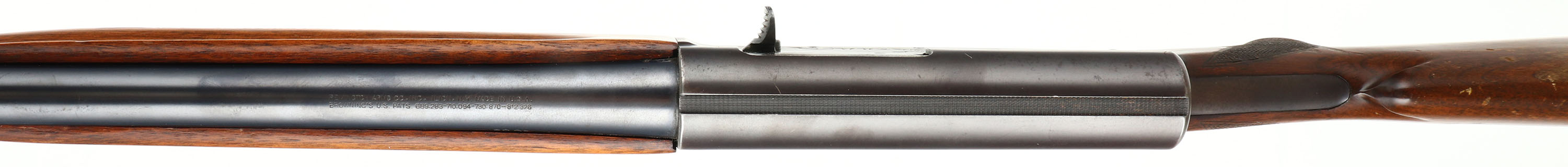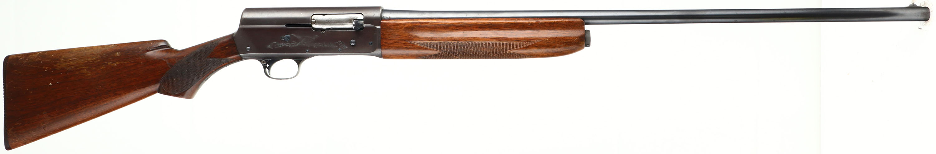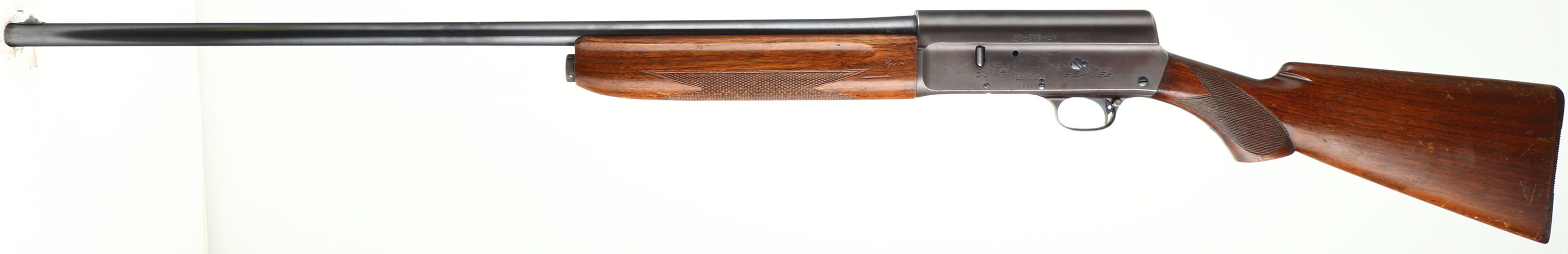 Remington Model ''The Sportsman'', CAL: 20 GA, MFG: 1959, SN: 12069, Semi-Auto Shotgun, Choke: Full, 28'' barrel. The left side of the receiver displays a roll stamp engraving of a flying mallard in a pond setting & the right side displays a pheasant in a grassy area. The checkered, flat pistol grip wood stocks are excellent, with some scratches, minor contusions & thinning or wear to the original. The metal blue finish rates 90% overall, with the finish on the receiver toning plum. Bore is excellent. Barrel fitted with a front bead on top of a small ramp. Buttstock carries a Remington, black plastic buttplate. LOP: 13 7/8''. FFL or C&R Req - Value: 300 to 600