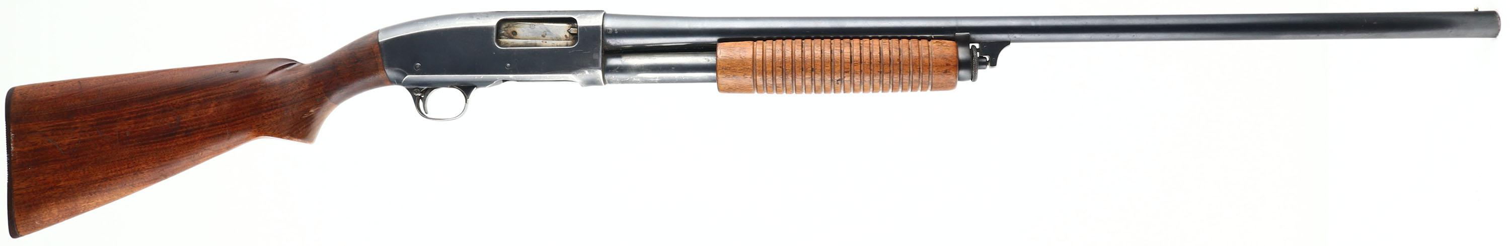 Remington, Model 31, 12 GA., MFG. 1940, SN: 33387, Pump action, MOD choke, 28'' plain barrel. The original flat pistol grip wood stocks are fair to good & solid, after a glued crack repair to the left side of the wrist that could use some additional detailing. The stock carry original finish, with thinning & numerous minor scuffs, contusions & scrapes. The original metal blue finish rates 85% on barrel, 70% on receiver & 50% on mag tube. Bore is excellent. Single bead front sight. Remington buttplate. 14'' LOP. FFL or C&R Req. - Value: 200 to 400