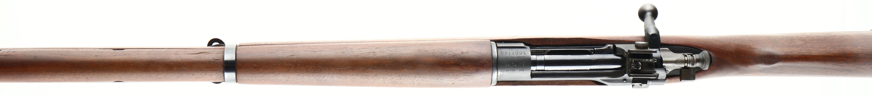 Santa FE. Model: 1903A3. CAL: 30-06. MFG: 1950's-72, S/N: 5002740, Bolt action rifle, 24'' Round barrel. The Semi-Pistol grip Type C stock is very good, near excellent, with light nicks, dings, dents, scratches, & wear from use & age. The parkerized metal finish on the barrel rates 90%, the parkerized metal finish on receiver rates 85% with spots of gun metal gray. Top front of receiver is marked ''CAL. 30-06'', ''SANTA FE'', ''MODEL 1903A3'', S/N. Top of barrel by the muzzle is marked, ''R. A'', Flaming bomb, ''8-44''. Bottom of barrel is marked ''P''. Bore is Near excellent, Bright & mirror like with one small spot of roughness, 2 groove rifling. Blade front sight with hooded protecter, aperture windage & elevation adjustable rear sight, marked on top ''2'' to ''8''. Steel trapdoor Butt plate, has wear. Action is tight and functions smooth. Bottom sling swivels. This rifle is a combination of original GI parts with a New production CAST receiver made by Santa FE later in the 50's through the early 70's, with the receiver being cast and no milled, & it being the locking component for the bolt we DO NOT recommend shooting this rifle until having it inspected by a licensed gunsmith, they have a history of blowing up when firing hot loads because they are cast & not milled like the originals, this would be a nice parts rifle since everything else is original production parts. FFL or C&R Req. - Value: 300 to 600
