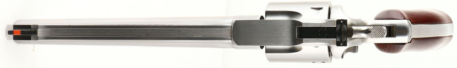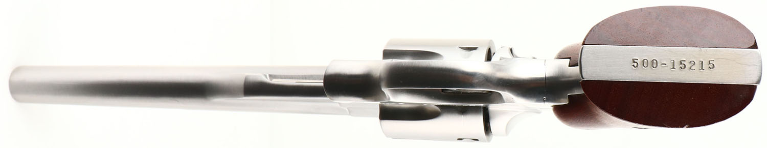Ruger, Redhawk, CAL: 44MAG, MFG: 1982, SN: 500-15215, Double Action Revolver, 7 1/2'' barrel. The Ruger logo medallion wood grips are excellent, with minor handling marks. The stainless steel finish is excellent, with minor handling marks. Bore is excellent. The frame holds an adjustable rear sight & the barrel has a serrated blade front sight, with orange insert. FFL Req. - Value: 600 to 1000