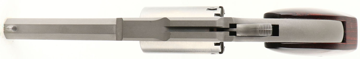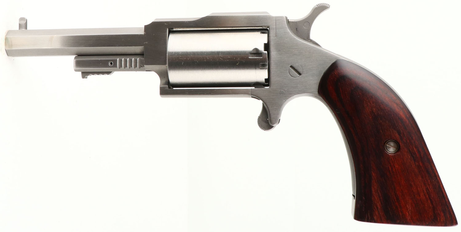 North American Arms, ''The Earl'', CAL: 22 MAG, MFG: Modern, SN: SH2575, Single Action Revolver, 2 1/2'' octagon barrel. The original wood grips are excellent. The stainless steel finish is excellent. Bore is excellent, near mint. The frame has an integrated rear groove & the barrel carries a post front sight. Comes in a lockable hard case, with paperwork & key. FFL Req. - Value: 300 to 400