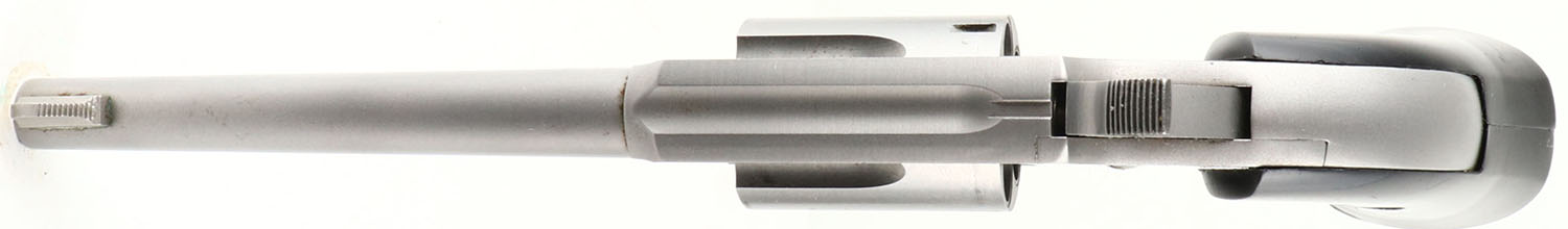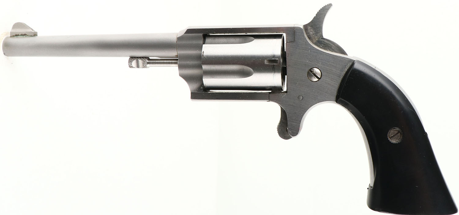 CASED, Freedom Arms, Mini Revolver, CAL: 22LR, MFG: Modern, SN: A38402, Single Action Revolver, 3'' barrel. The synthetic black grips are excellent. The stainless steel finish is excellent overall, with a faint drag line on the cylinder. Bore is excellent, with roughness at the chamber end of the barrel. Barrel holds a serrated blade front sight. Comes in NAA original locking hard case, with keys. FFL Req. - Value: 200 to 300