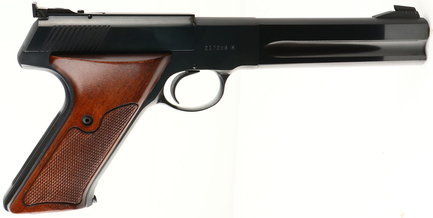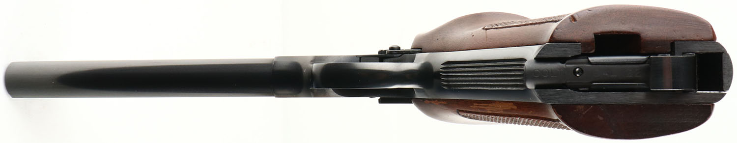 Colt, Woodsman Match Target, CAL: 22 LR, MFG: 1967, SN: 217296-S, Semi Auto Pistol, 6'' barrel. The original, thumb rest & checkered wood grips are excellent. There are only a couple minor handling marks to the finish. The metal blue finish rates 99% overall. The left side of the barrel is marked ''COLT'S PT. F.A MFG CO HARTFORD CT USA'', the left side of the frame is marked with the Rampant Colt over ''MATCH TARGET''. The left side of the slide is marked ''COLT'', & in two lines ''AUTOMATIC CAL .22 LONG RIFLE''. Bore is excellent, with crisp rifling. The slide carries a ELLIASON adjustable rear sight & ramp elevated blade front sight. Colt marked detachable mag. This collectible 3rd series Match Target has an overall excellent appearance, showing little to no use. FFL or C&R Req. - Value: 1200 to 2000
