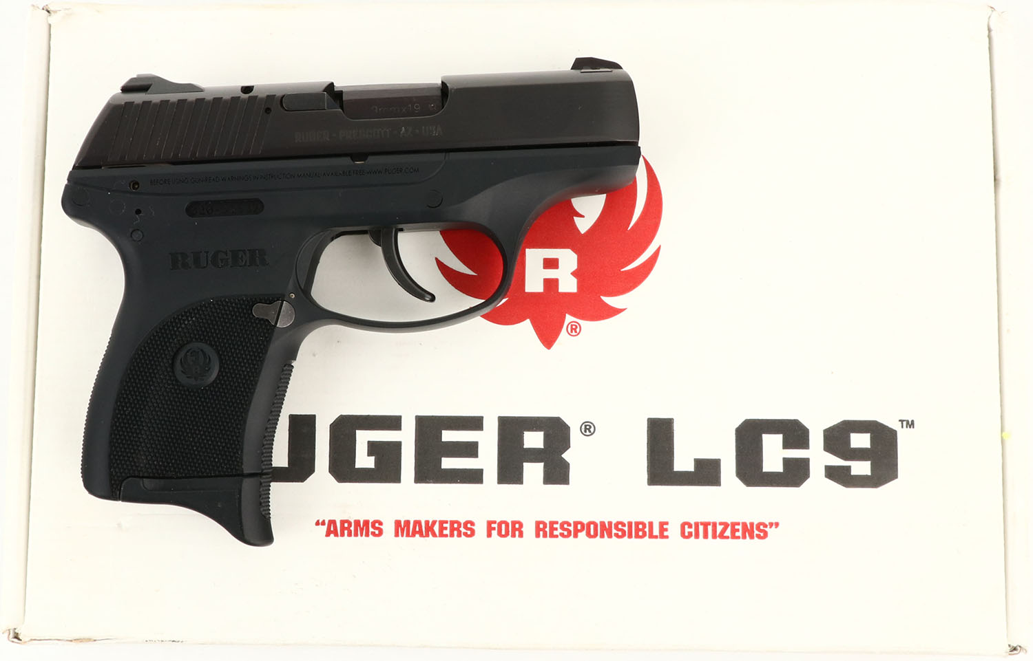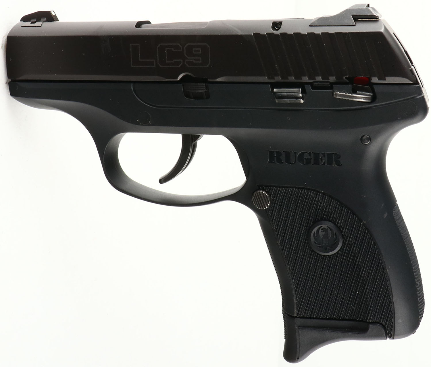 BOXED, Ruger, Model LC9, CAL: 9mm, MFG: Modern, SN: 320-51537, Semi Auto Pistol, 3'' barrel. The checkered polymer grip frame is excellent. The factory matte black finish on the slide rates 98%. Bore is excellent. Factory white dot sights. Comes in factory box, with soft carrying case, related paperwork, tools & lock/key. FFL Req. - Value: 300 to 500