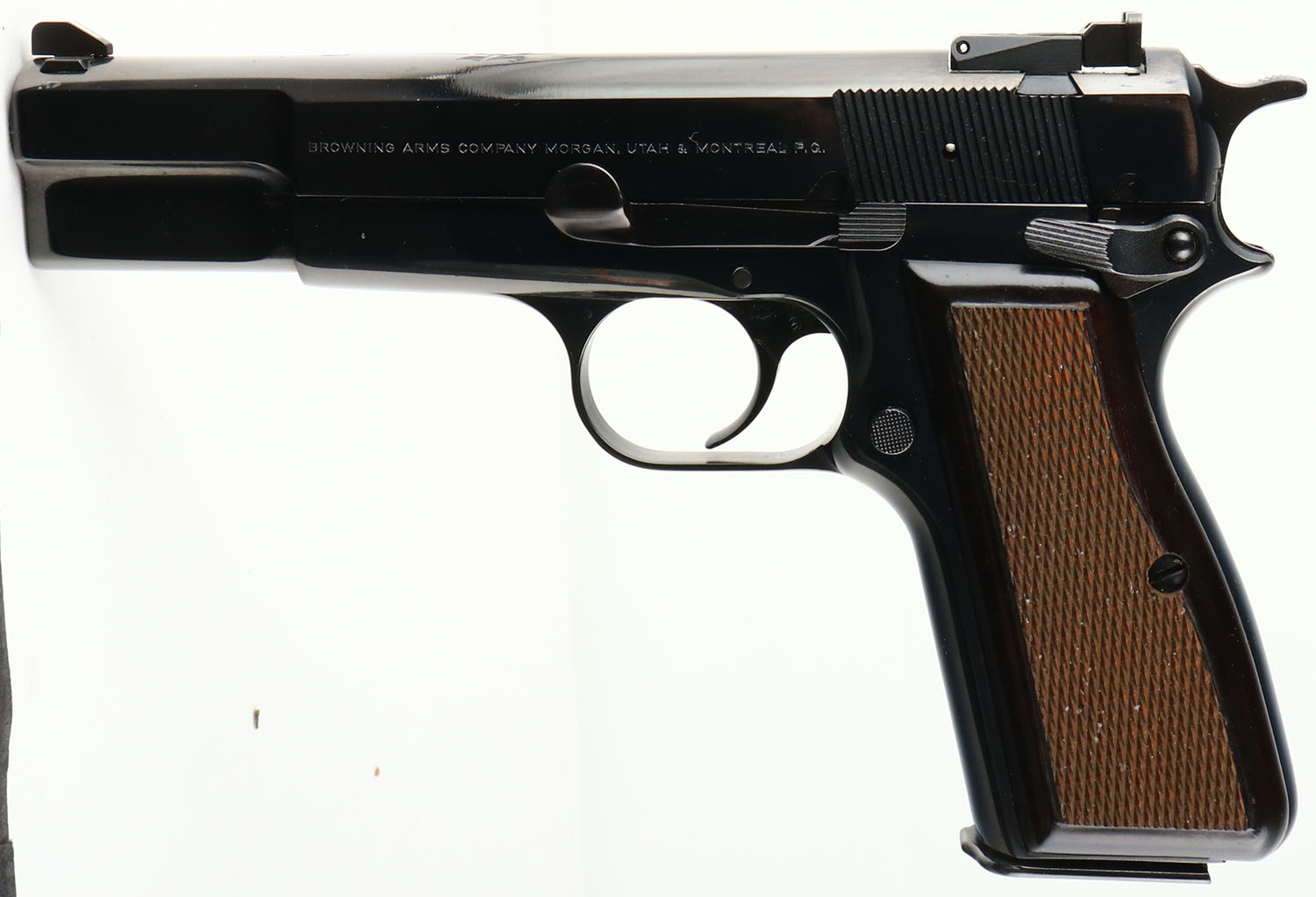 CASED, Browning (Belgium) Model ''Hi-Power'', 75th Anniversary Edition, CAL: 9mm, MFG: 2010, SN: 511ZM51529, Semi Auto Pistol, 4 5/8'' barrel. The checkered wood grips are excellent with light surface wear to checkering. The polished metal blue finish is 98%. Bore is excellent. The slide carries an adjustable rear & fixed front sight. Comes in factory case, comes with extra magazines, tool, lock & related paperwork, NOS. FFL Req. - Value: 1000 to 2000