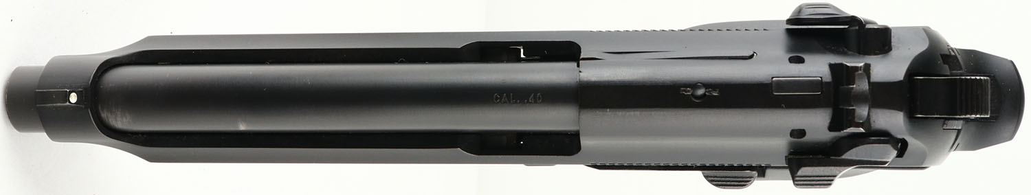 CASED Beretta, Model 96, CAL: 40, MFG: Modern, SN: BER006144M, Semi Auto Pistol, 4 3/4'' barrel. The factory checkered grips are excellent. The factory metal black finish rates 95% overall, with scrapes, dings & blemishes. Bore is excellent. The slide holds a 2 white dot rear sight & a dingle white dot front sight. Comes with (2) 10rd mags. This series of pistols is based on the Beretta 92 series, but chambered in 40 S&W instead of 9mm. FFL Req. - Value: 400 to 800