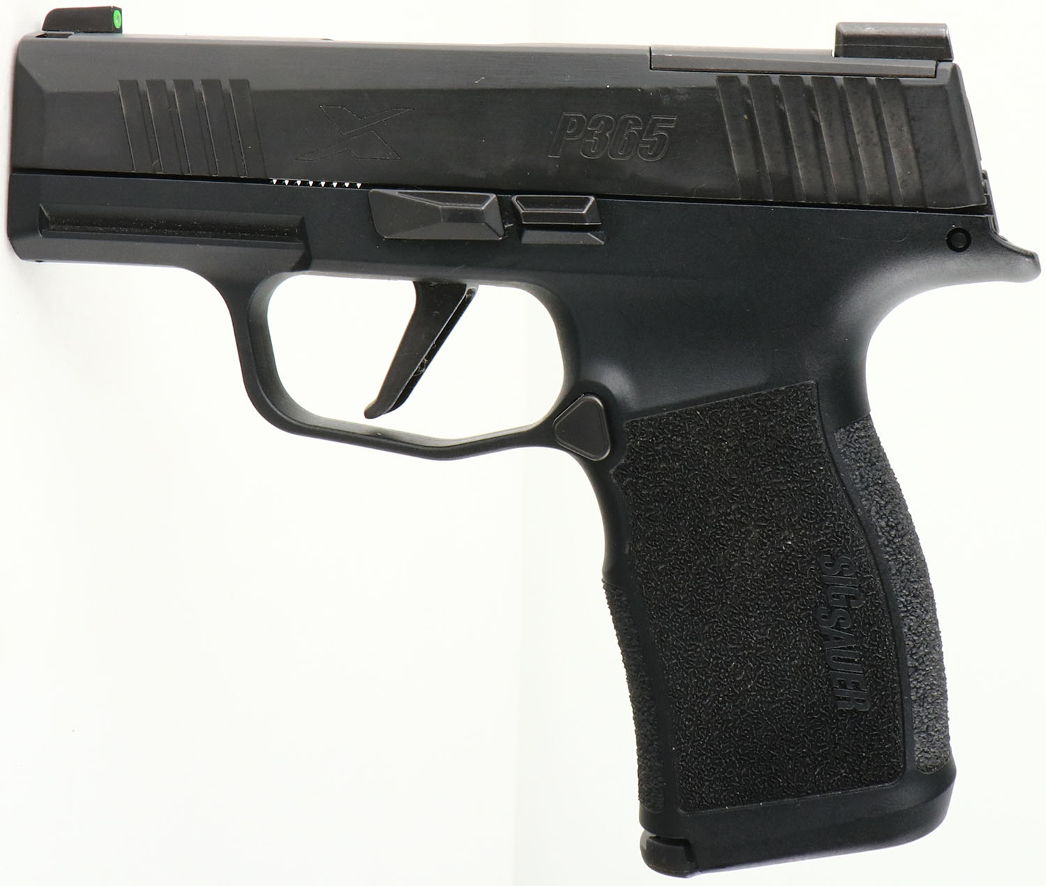 Sig Sauer, Model P365, CAL: 9mm, MFG: Modern, SN: 66B796002, Semi Auto Pistol, 3'' barrel. The textured polymer grip frame is excellent. The matte black finish on the slide rates 99%+. Bore is excellent & minty. Slide is optic ready & fitted with X-Ray3 Day/Night sights. Comes in factory non-matching hard case, with related paperwork, extra mag & lock/key. FFL Req. - Value: 500 to 700