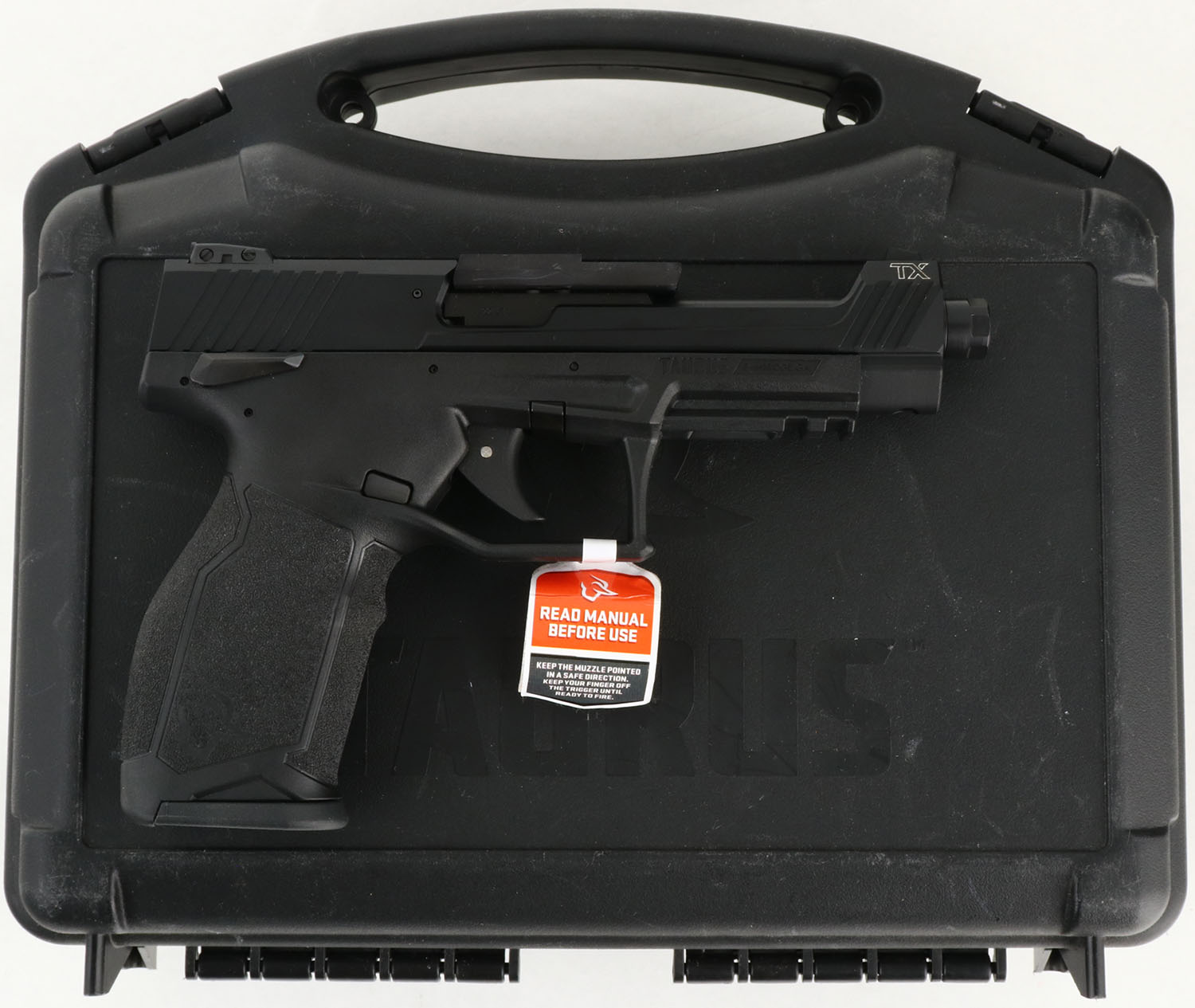 BOXED Taurus, Model TX22 Competition, Cal. .22 LR, Semi-Auto Pistol, Mfg. Modern, SN: 1PT449335, 5 1/4'' barrel, The original grips are excellent, Original mate blue finish is 100%, Bore is excellent, Has factory white dot sights front & black, BLACK OPTICS READY COMP. Original box, with paperwork, lock, speed loader & (2) extra 16 rd mag. Gun store inventory, NOS. FFL Req. - Value: 400 to 600