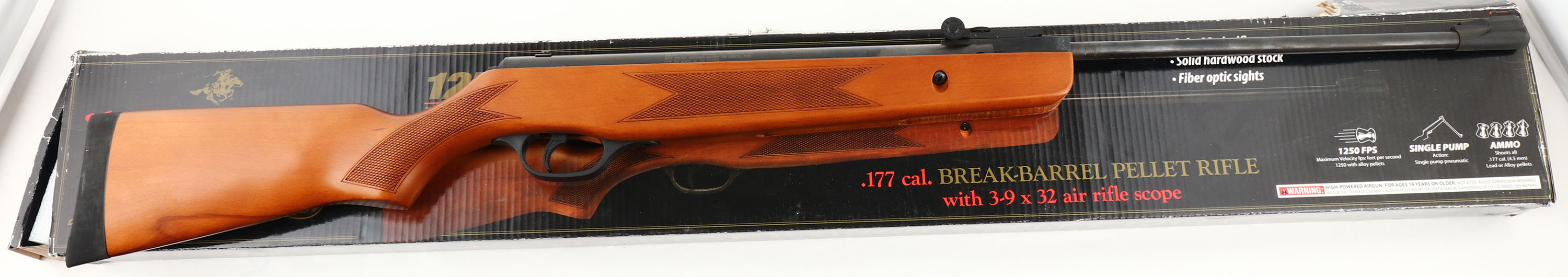 Winchester, Model 1250WS, .177 Caliber Pellet Rifle, Single Pump Break-Barrel, 1250 FPS, 19'' Barrel, Checkered Wood Stock, Fiber-optic adjustable rear sights & hooded front sight post, bore is excellent, comes in original box. Grade: Excellent ++ - Value: 50 to 150