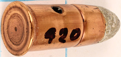 RARE N/H, 56-50 Spencer ''full circle crimp'' 1-hole dummy for display, conical LD. Grade: Very Good ++ - Value: 200 to 500