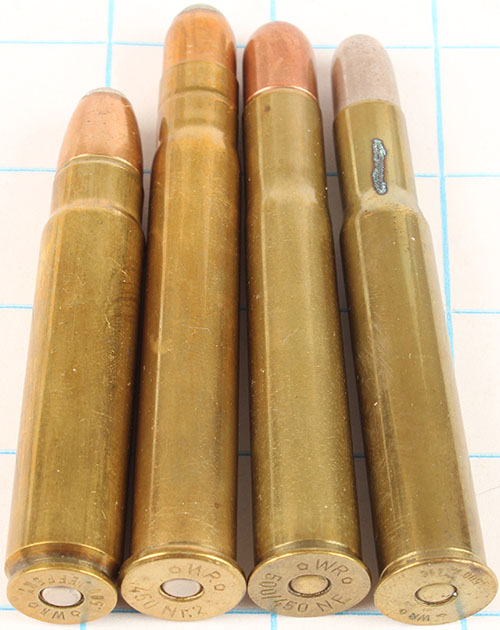Lot of 4, all by Wolfgang Romey'' (1) ea: 500 Jeffrey, 500/450 Nitro, .450 #2, .500/416. All cartridges carry the caliber and ''diamond WR diamond'' logo. Grade: Excellent - Value: 20 to 60