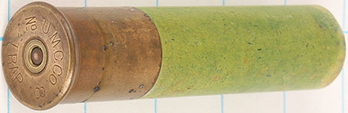 NPE, H/S= ''U.M.C.CO TRAP No.8, 4'' OAL. Empty green paper case. Grade: Excellent - Value: 20 to 80