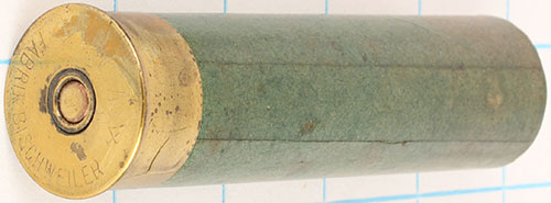 NPE, H/S= ''WM Fabrik Bischweller 4ga'' 4'' OAL. Empty green paper case. Grade: Excellent - Value: 20 to 80
