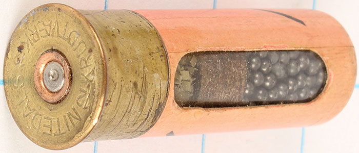H/S= '' Nitedals 12 ga Krudtvaerk'' 2 3/8'' OAL. Window shell, salesman sample in orange paper case, primer is dented. Grade: Very Good ++ - Value: 10 to 50