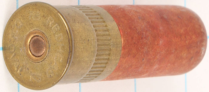 H/S= ''Redhead D.N. Oval 12 ga'' 2 1/2'' OAL. Loaded tan paper case. Grade: Excellent - Value: 4 to 30