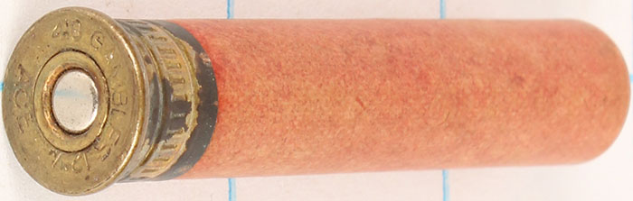 H/S= ''410 Gambles 12 m/m Ace'' 2 5/16'' OAL. Loaded tan paper case. Grade: Excellent - Value: 4 to 30