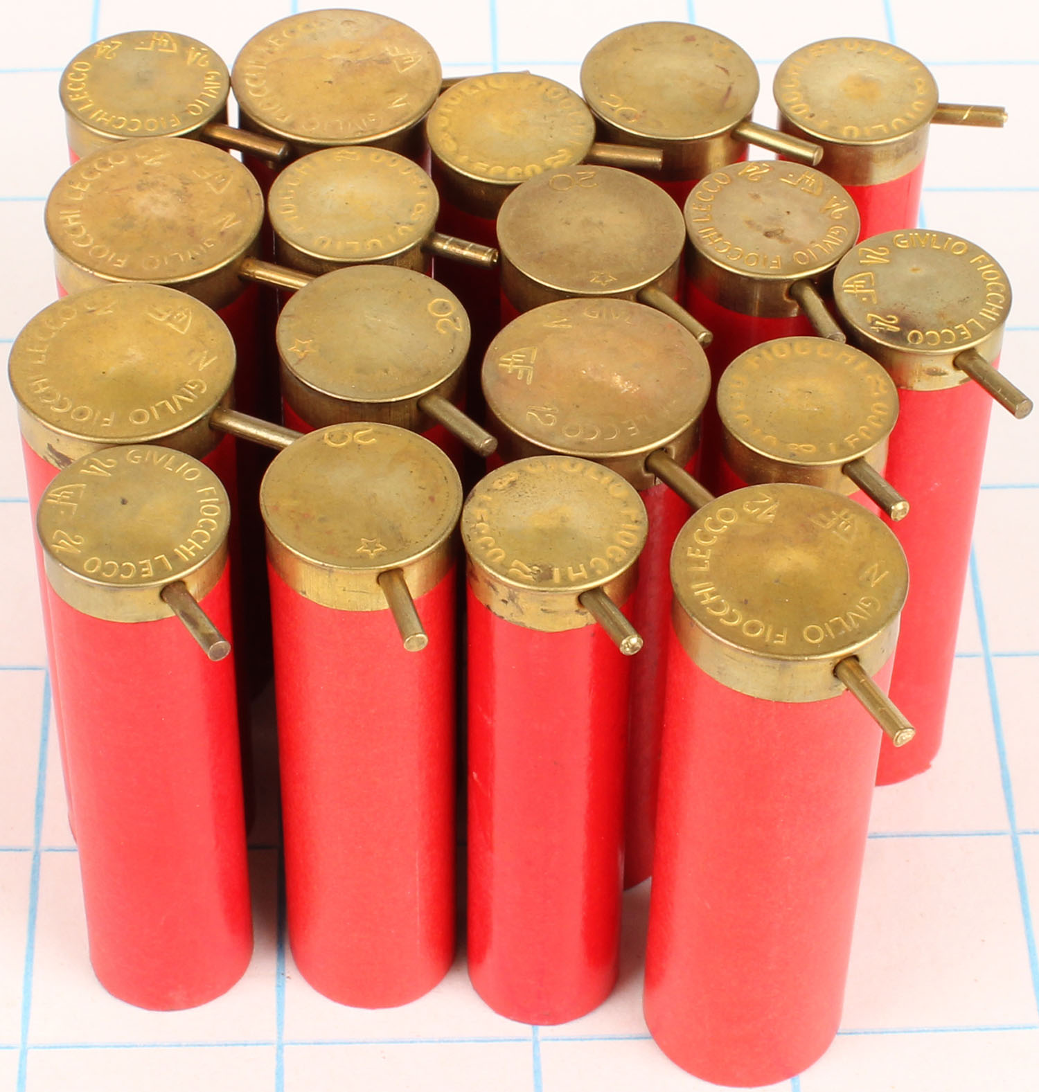 Large lot of empty pinfire shotshells, red paper cases. Grade: Very Good ++ - Value: 10 to 50