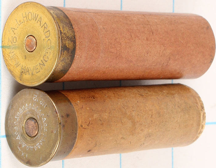 Lot of 2 empty shotshells in paper cases. Grade: Very Good ++ - Value: 6 to 30