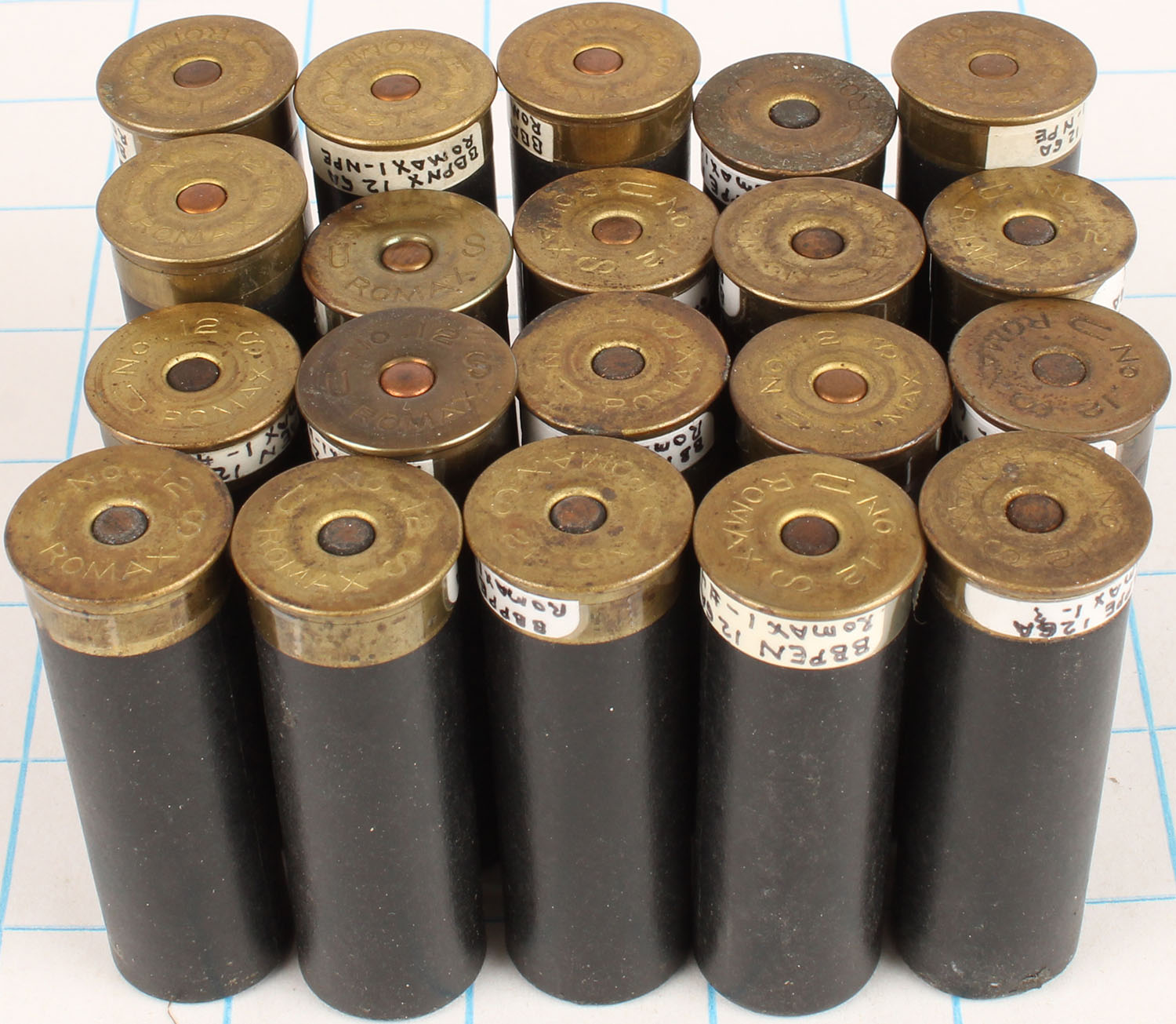 | Large lot of empty and loaded shotshells in black paper cases. ...