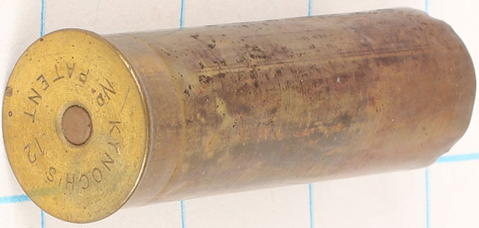 | H/S= ''KYNOCH'S No 12 PATENT'' empty brass shotshell, 2 9/1...