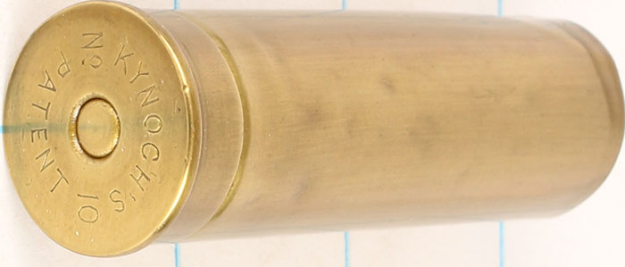 H/S= ''KYNOCH'S No 10 PATENT'' empty brass shotshell, 2 5/8'' OAL. Grade: Very Good ++ - Value: 6 to 30