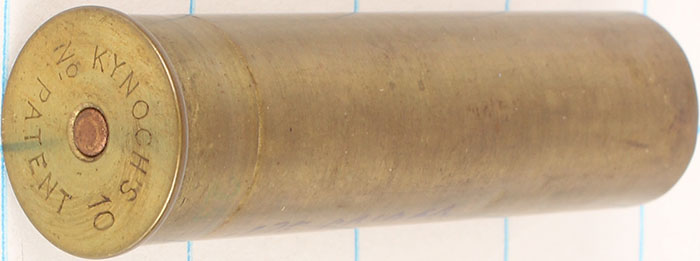 H/S= ''KYNOCH'S No 10 PATENT'' 3 1/4'' OAL. Empty brass shotshell. Grade: Excellent - Value: 6 to 30