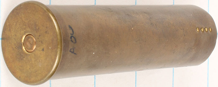 | Lot of 1 empty brass shotshell, 4ga?, 3 13/16'' OAL. Grade: E...