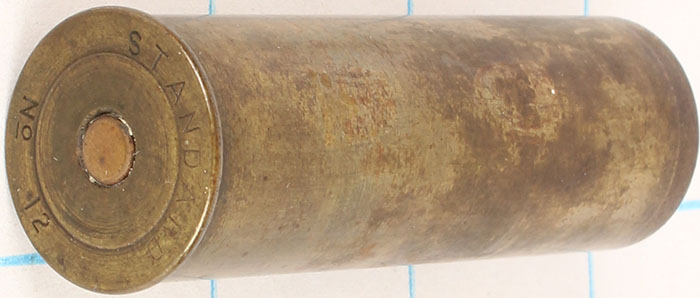 H/S= ''Standard No 12'' 2 1/2'' OAL, empty brass shotshell. Grade: Very Good ++ - Value: 6 to 30