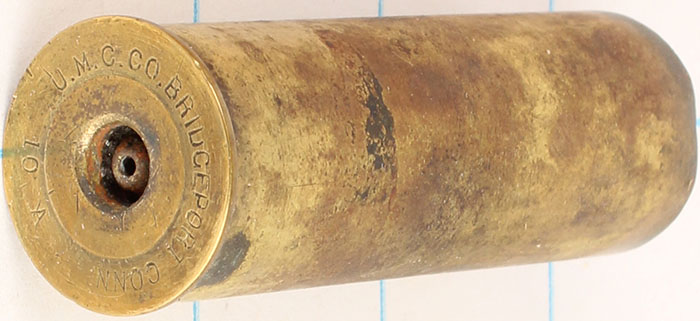 H/S= ''U.M.C.CO. Bridgeport Conn 10ga'' 2 5/8'' OAL, unprimed empty brass shotshell. Grade: Very Good + - Value: 6 to 30