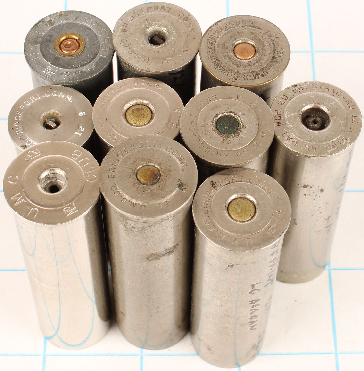 Lot of 10 empty nickel shotshells, 12ga. Grade: Very Good ++ - Value: 10 to 60