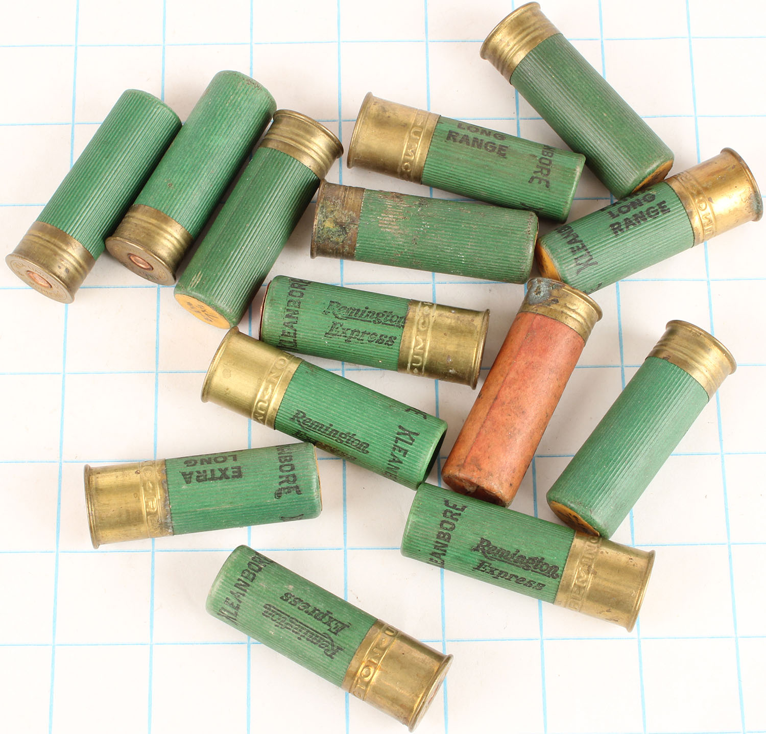 Lot of 14 loaded shotshells, mixed H/S, 12ga, 2 3/8'' OAL. Grade: Very Good ++ - Value: 2 to 30