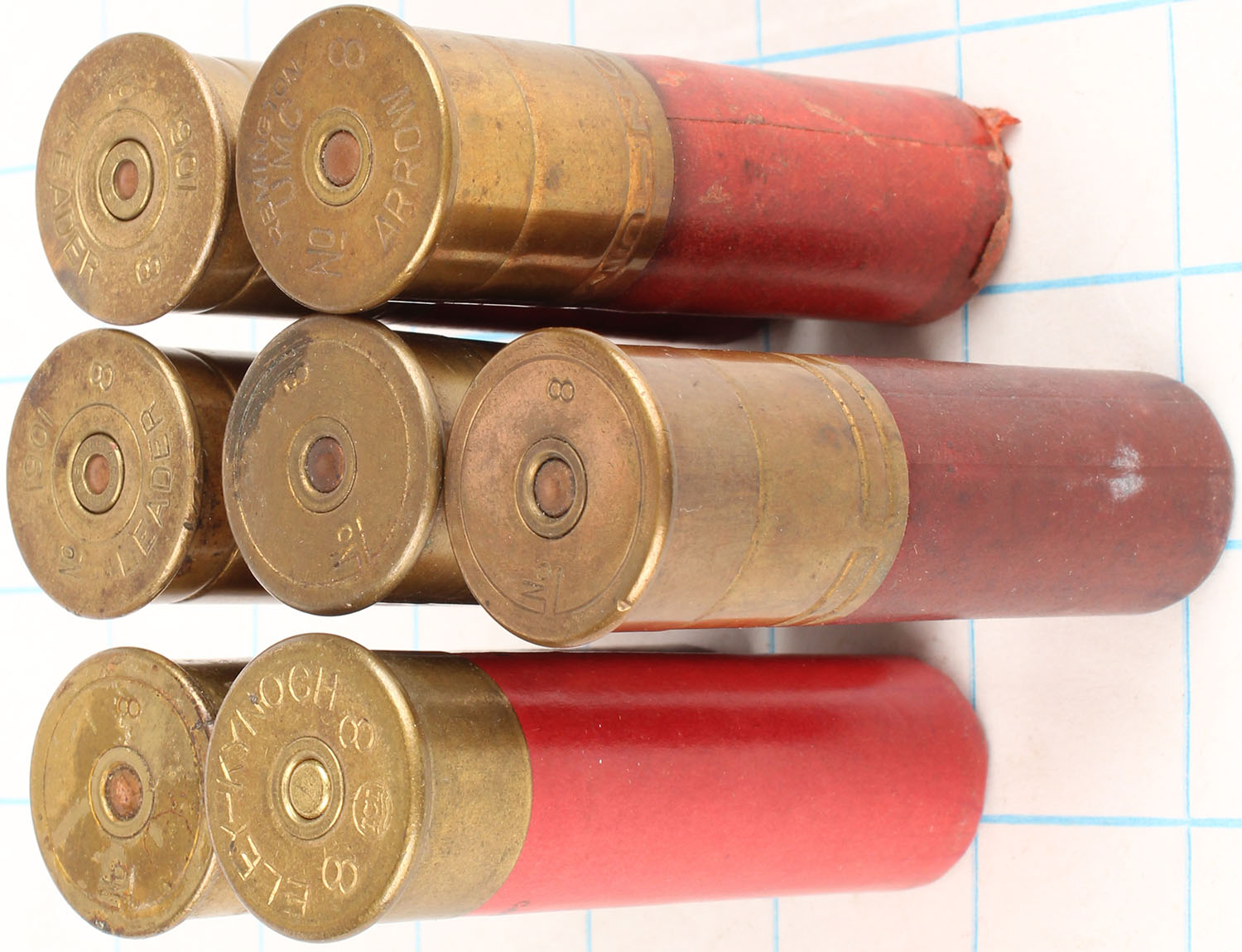 | Lot of 7 loaded paper shotshells, mixed H/S, 8ga. Grade: Very G...