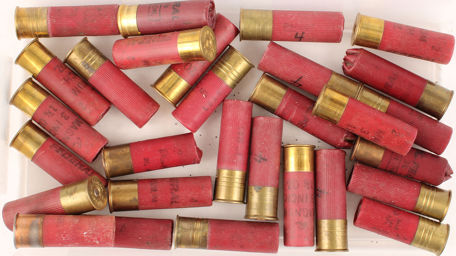 | Large lot of loaded shotshells, 12ga, red plastic cases. Grade:...