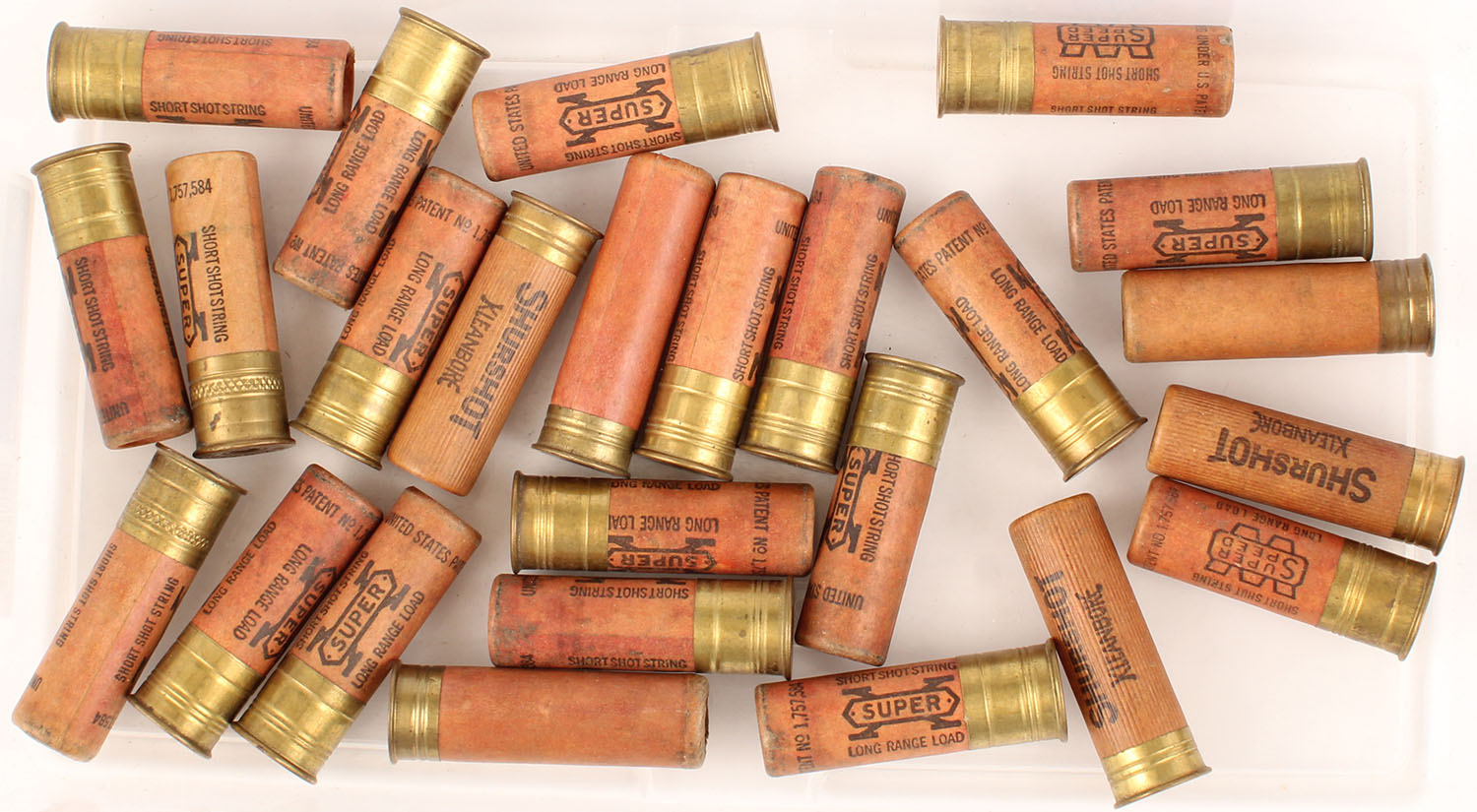 | Large lot of loaded tan paper shotshells, 16ga. Grade: Very Goo...