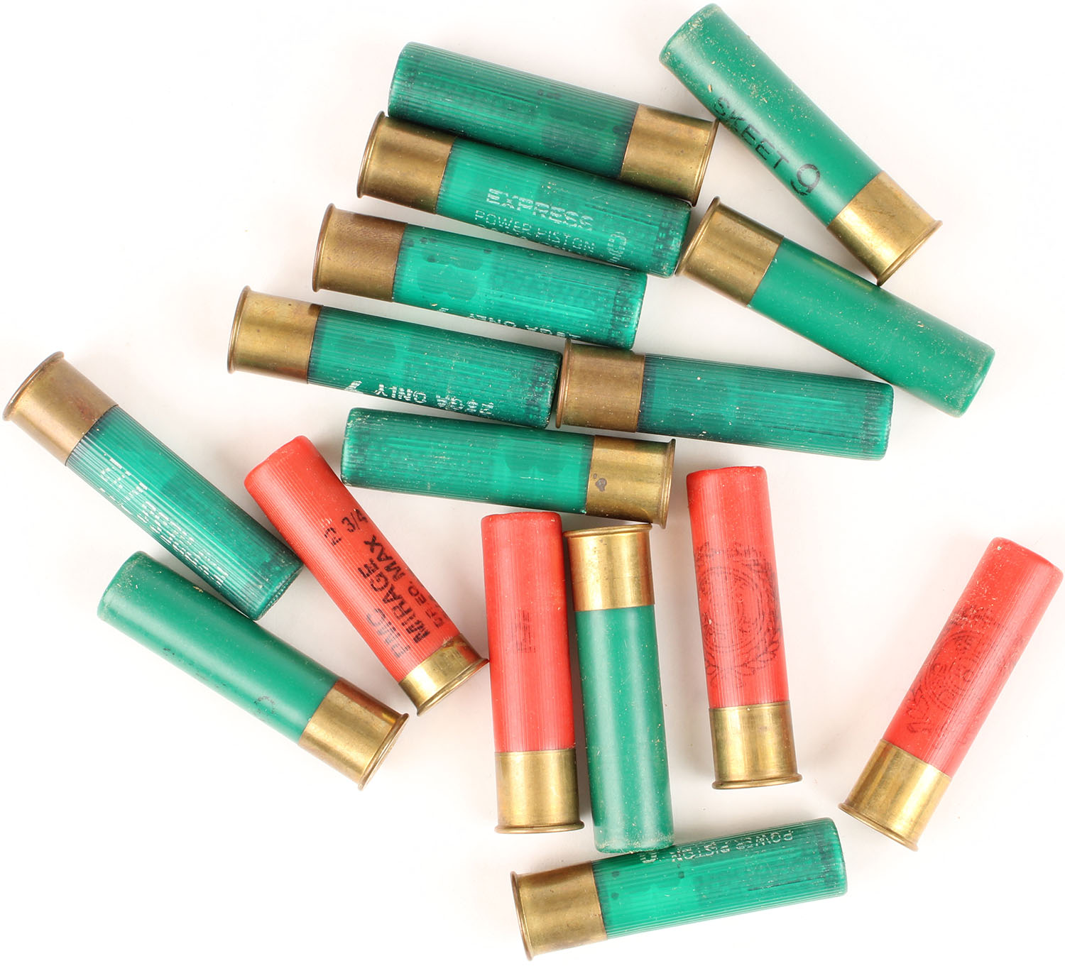 | Lot of 16 loaded plastic shotshells, mixed H/S, 28ga, 2 3/8'' ...