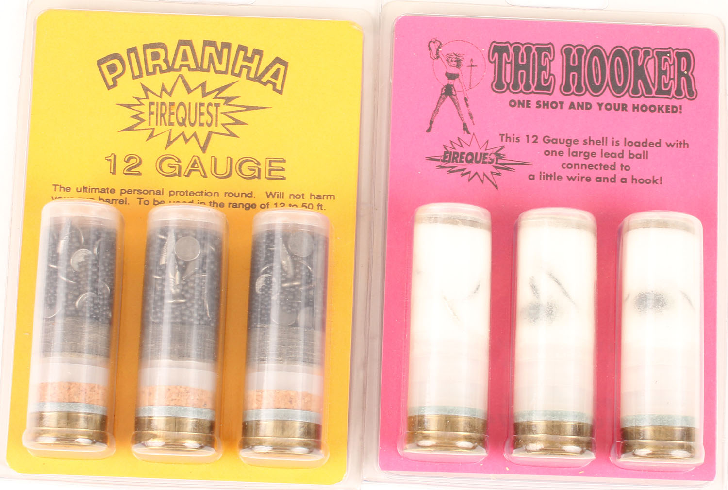 Lot of 2 (1) Piranha Firequest 12ga shells in original packaging (1) The Hooker 12ga shells in original packaging. Grade: Excellent - Value: 2 to 100