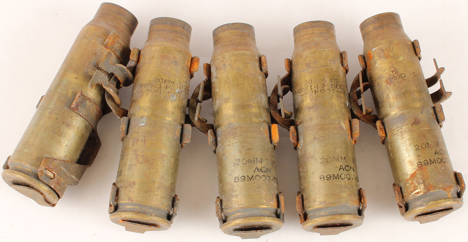 US, 20MM M103 Linked fired shells, links have rust, cases have wear & corrosion. Grade: Good ++ - Value: 20 to 40