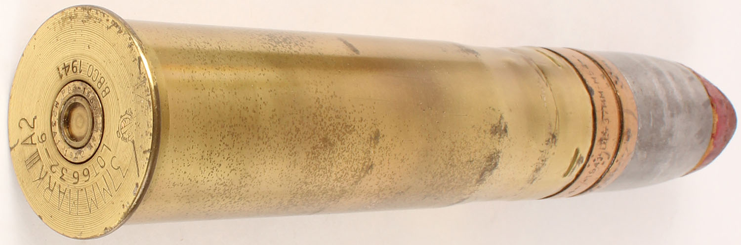 US, 37mm MK3A2 Cannon shell, has cork tip, H/S: ''37MM.MKIII A2'', ''LOT 6632-6'', ''B.B.CO.1941''. Grade: Excellent - Value: 10 to 40