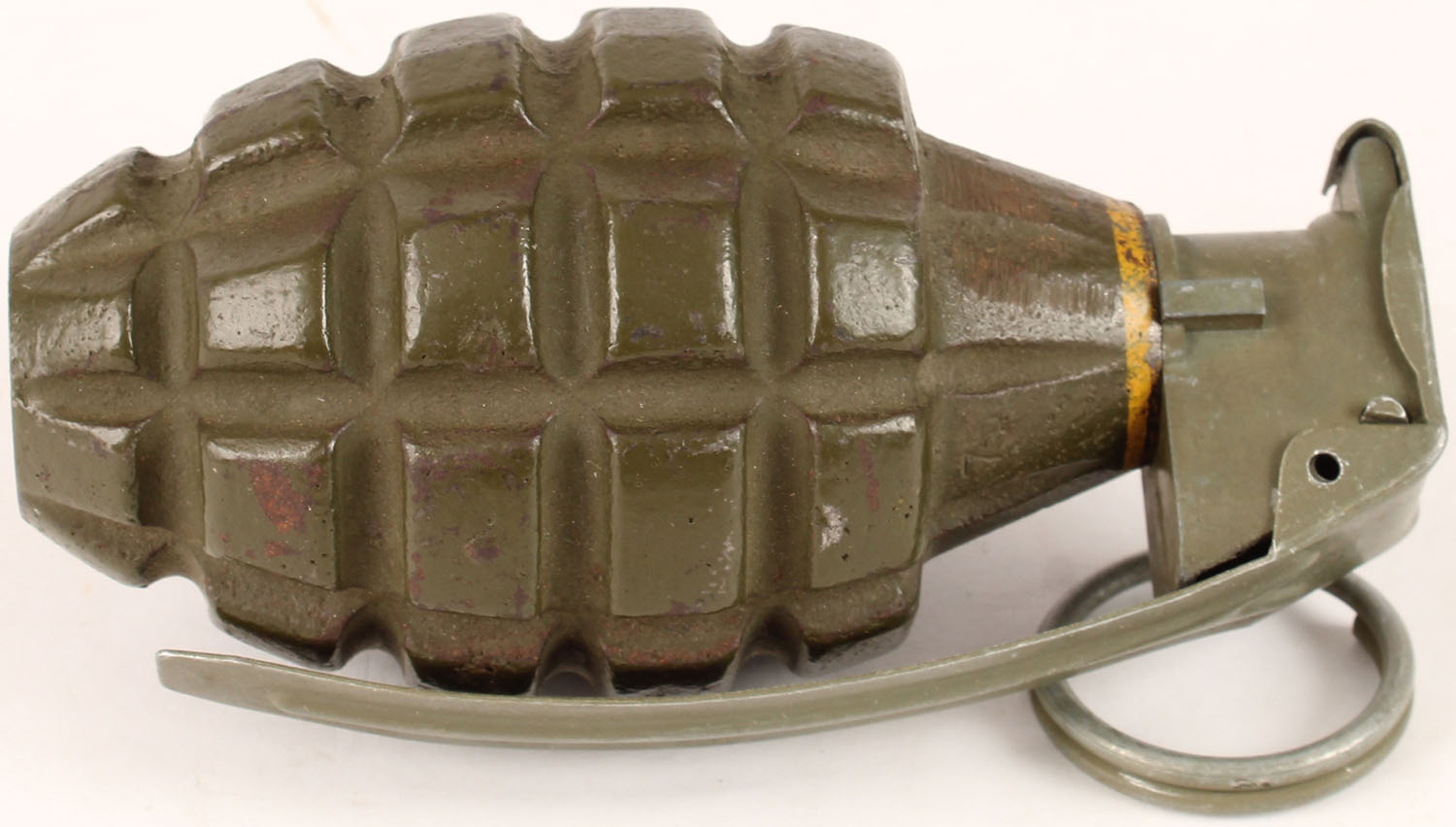 | US, WW2 MK2 HE Grenade, OD green with yellow band on top, shell ...