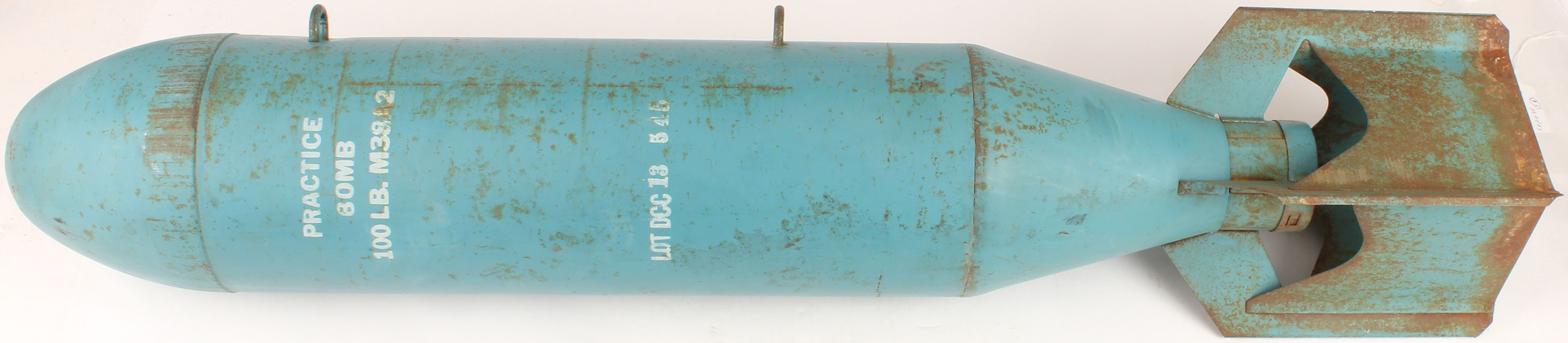 US, M38A2 Practice 100 LB. Bomb, bomb is very light not simulated to 100 lbs., bomb has some rust & wear. Grade: Very Good + - Value: 200 to 400