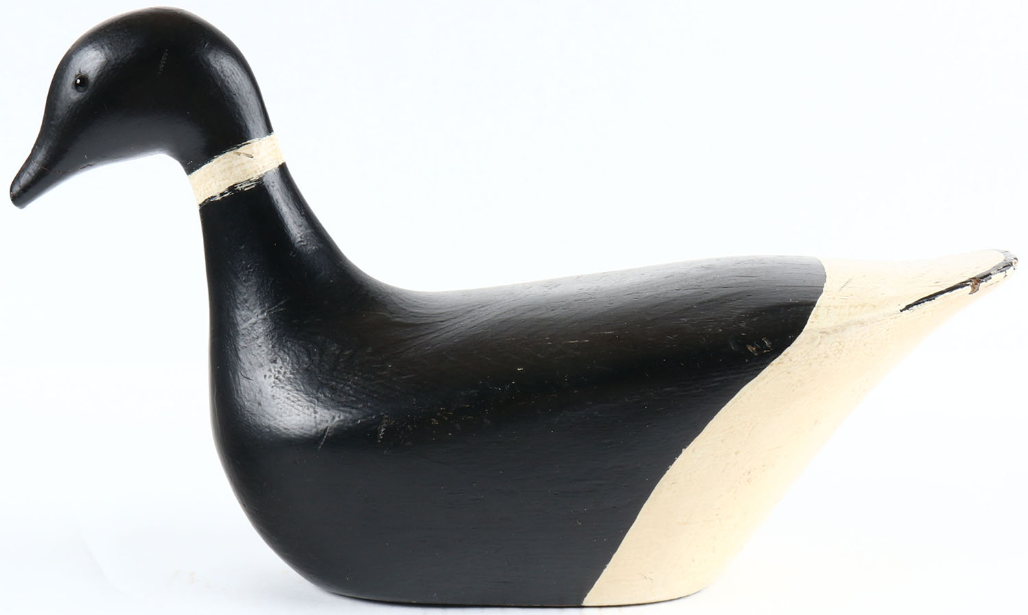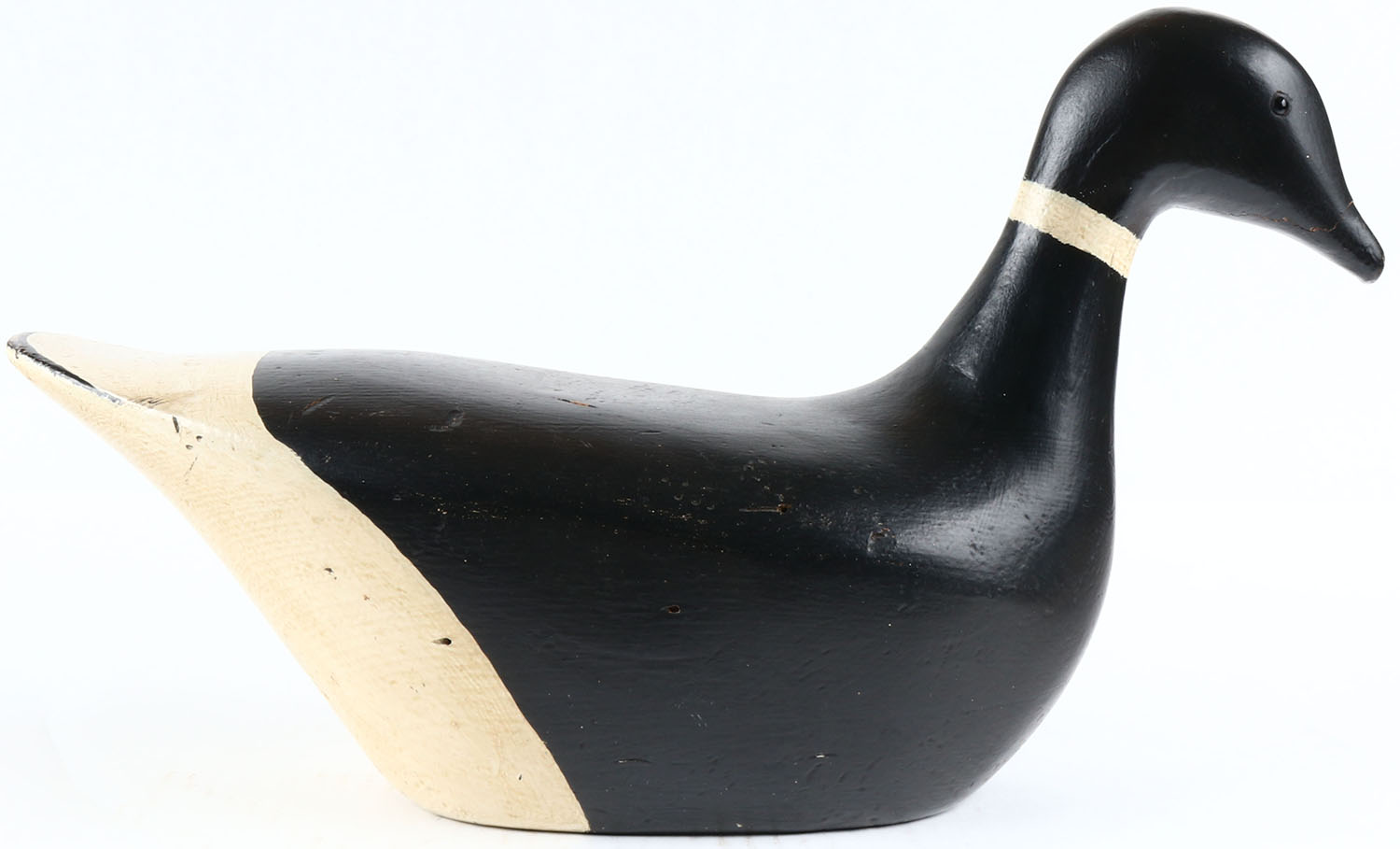 Atlantic Brant by Humbolt Bay, Bill McLellan Style, attributed to Arcata Barrel Co., GE, hollow wood, original paint, has hair line crack to middle of bill otherwise structurally excellent. Grade: Very Good ++ - Value: 50 to 300