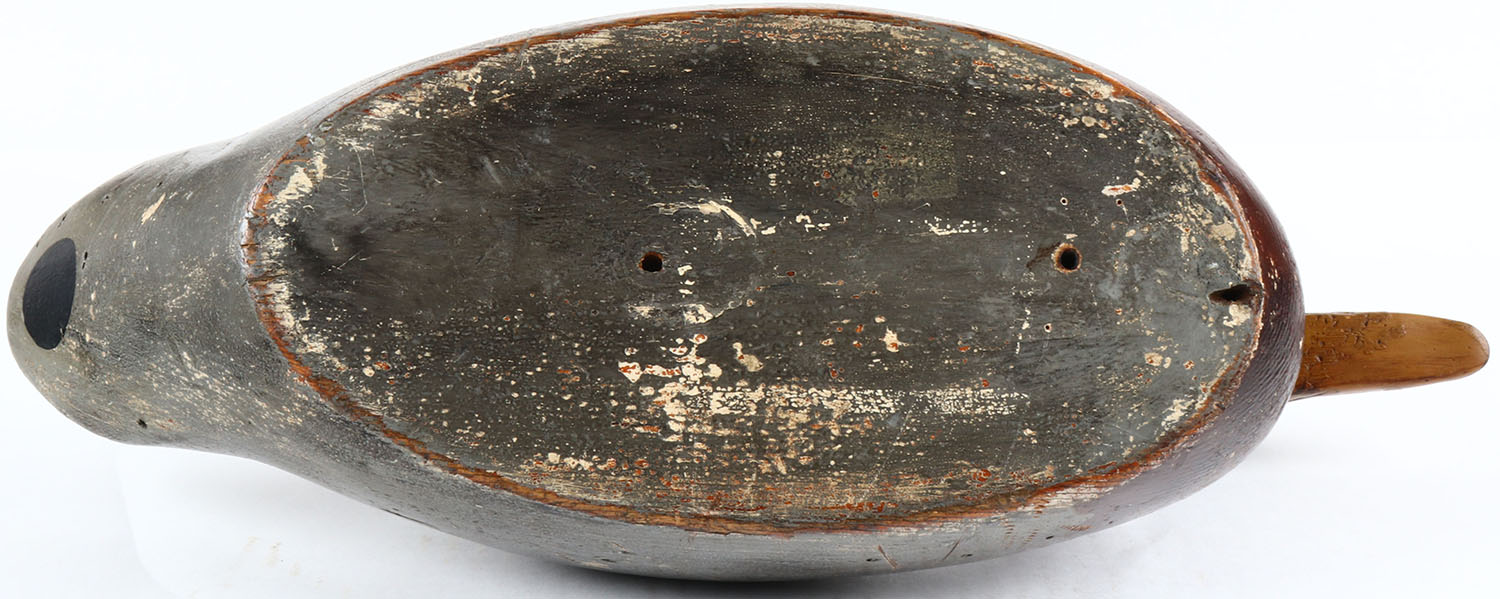 Mallard Drake, by Mason Decoy Company, Detroit, MI, 1896-1924 premier grade, glass eyes, solid wood, original paint with nice neck, shows scraps & scratches from use, structurally Excellent. Grade: Excellent - Value: 500 to 1000