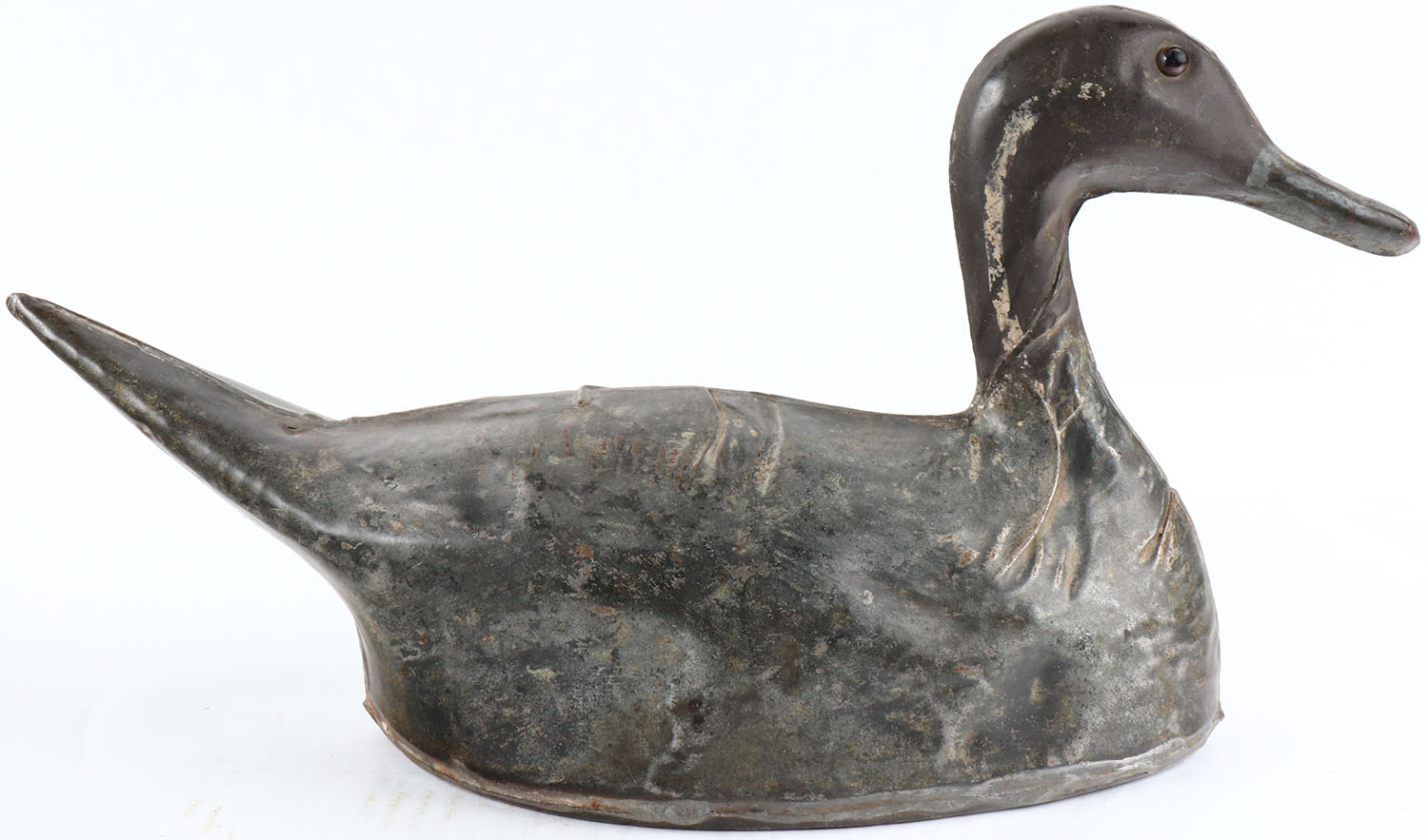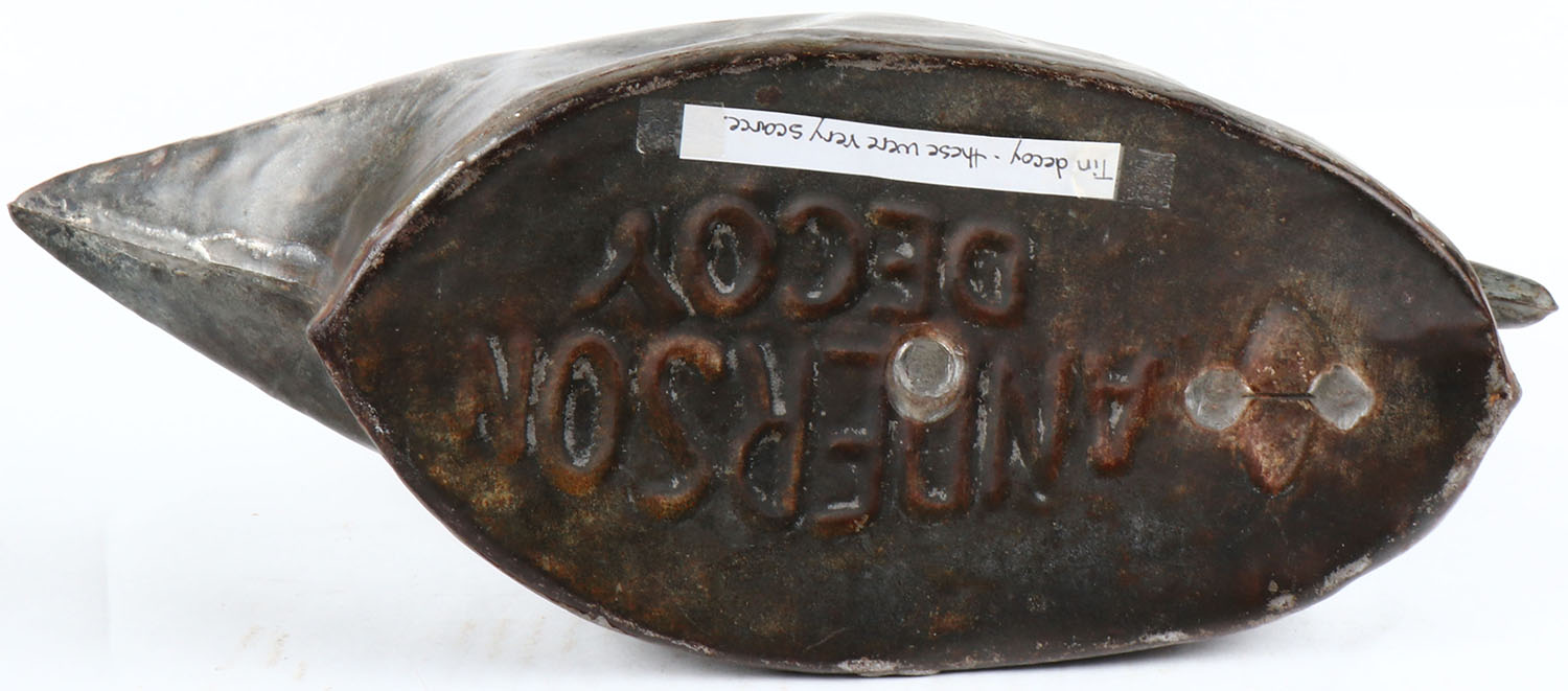 RARE Pintail Drake made by Anderson Decoy, San Francisco, 1928-1930, glass eyes, tin construction, some dents from use, structurally excellent. Grade: Excellent - Value: 100 to 400
