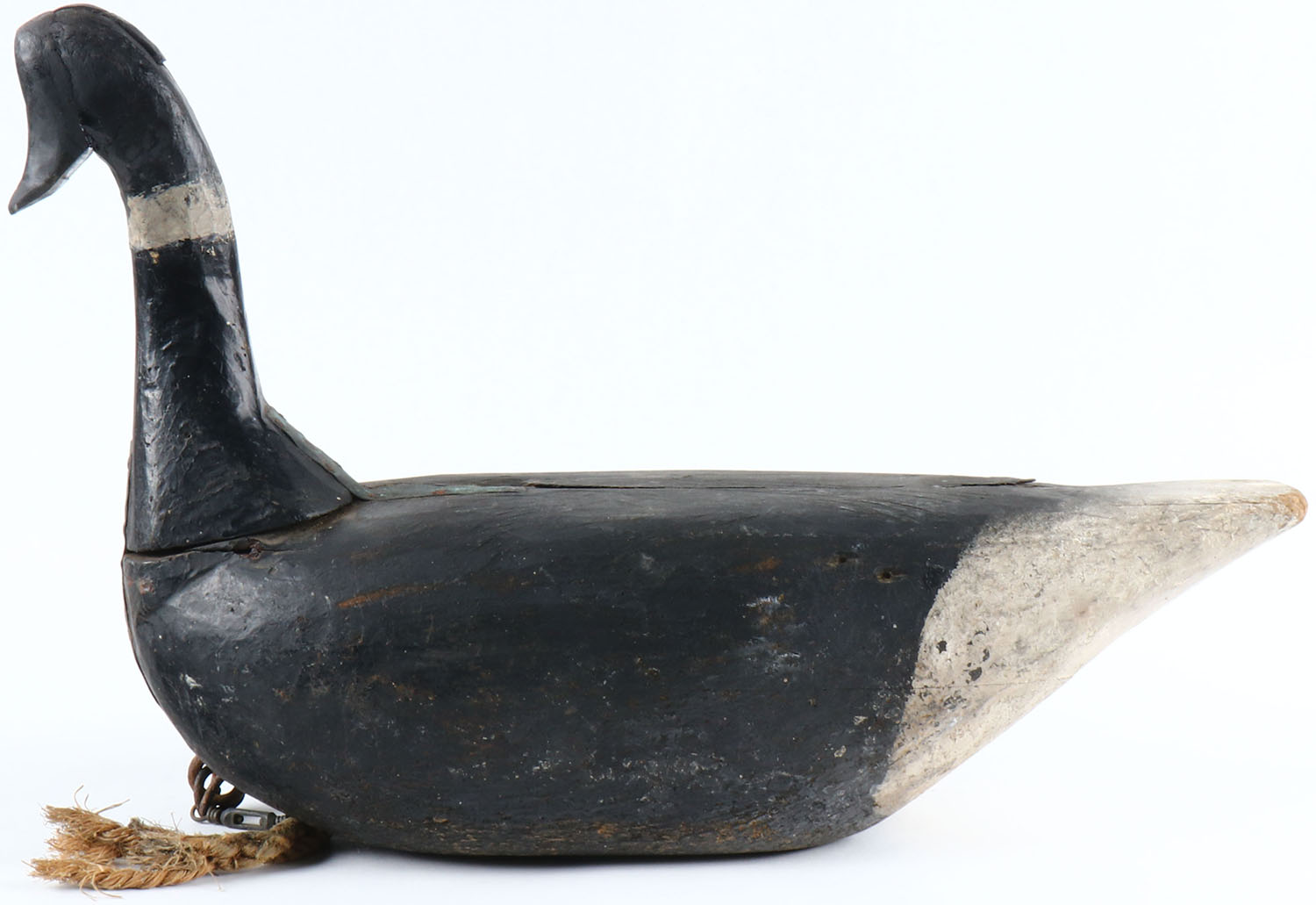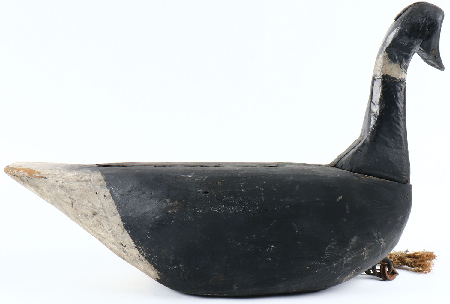 Early Black Brant by unknown maker, no eyes, solid wood, old repaint on head, body is original, structurally excellent, 18'' long. Grade: Very Good ++ - Value: 70 to 150