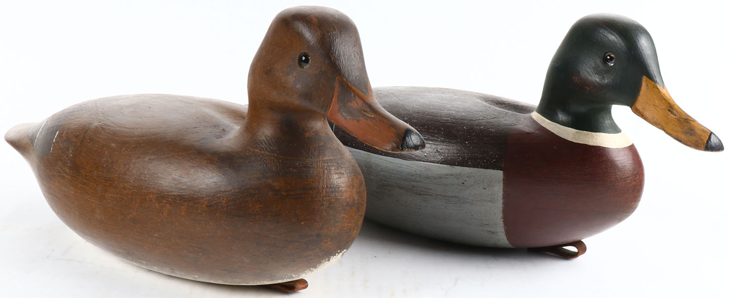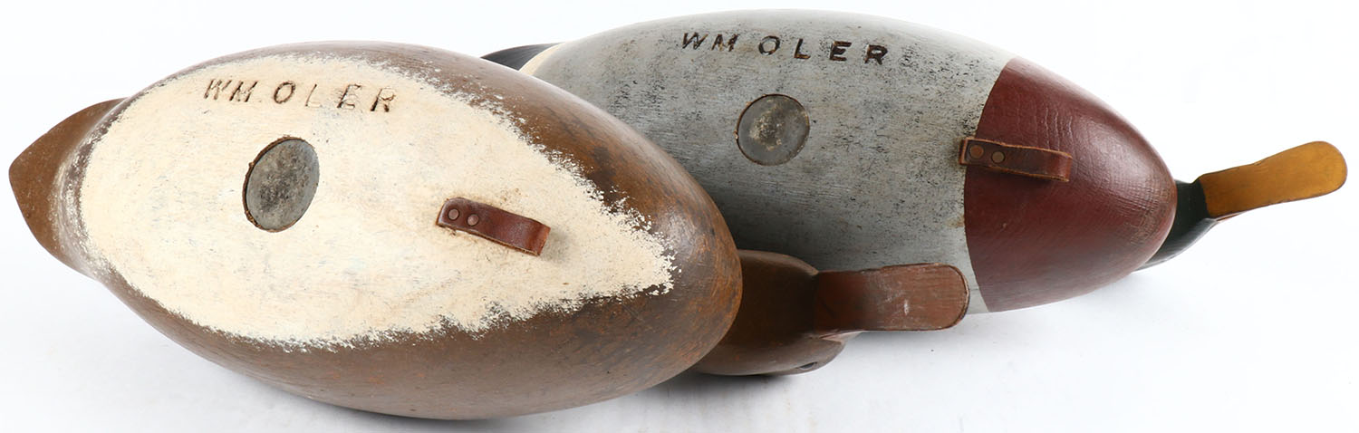 Pair of Mallards by Wm. Oler, (son of Walter), Beach Haven NJ, glass eyes, hollow wood, excellent original paint, structurally excellent. Grade: Excellent ++ - Value: 250 to 500