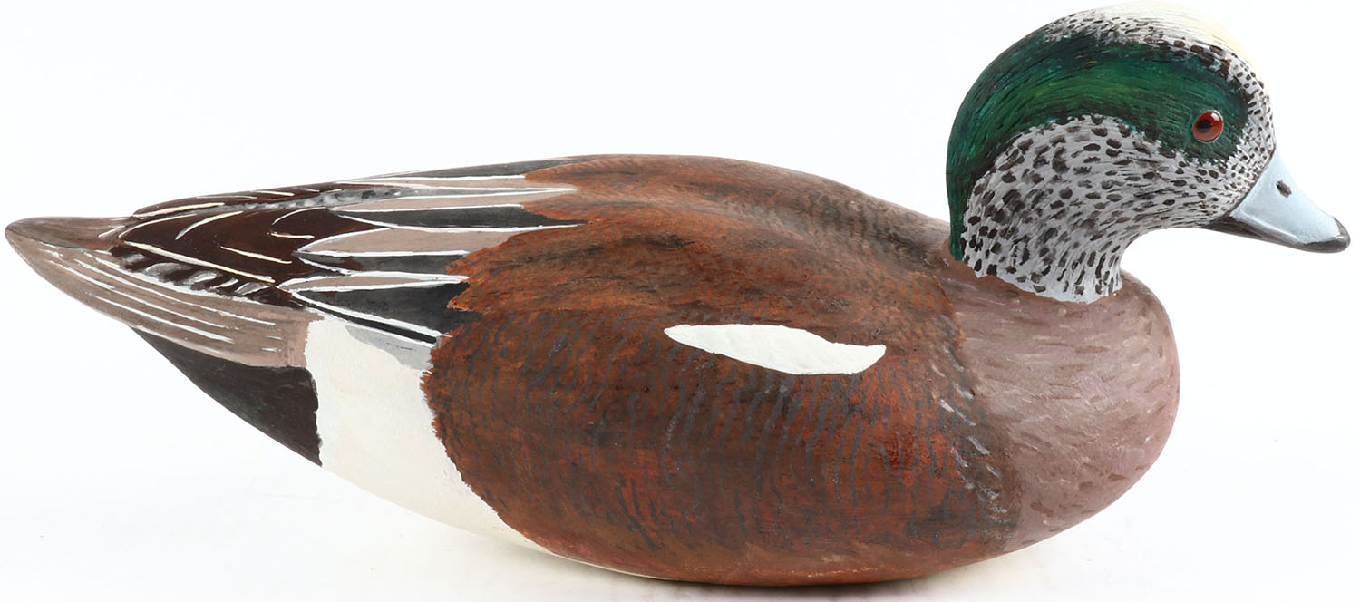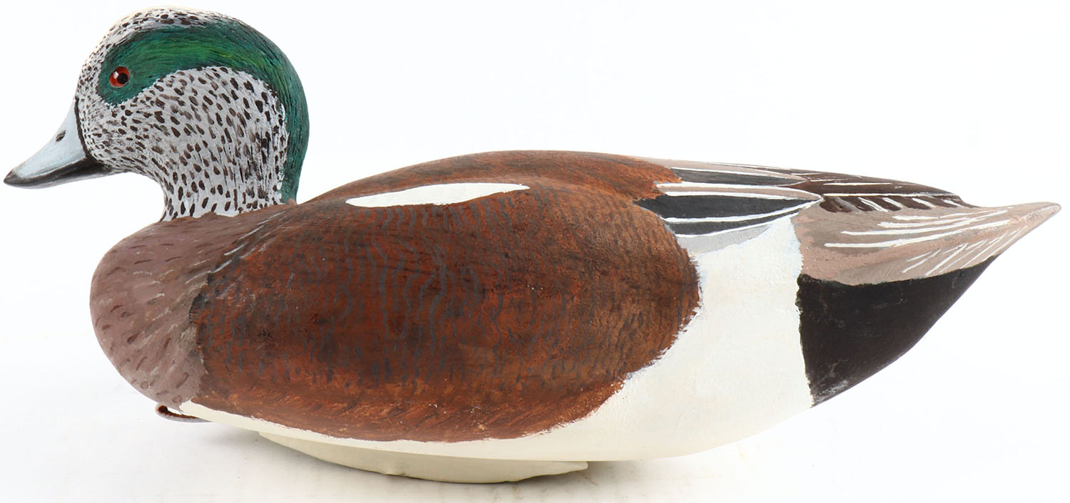 Widgeon Drake by Jack Leach Tacoma, WA, glass eyes, hollow wood, mint original paint, structurally excellent. Grade: MINT - Value: 100 to 300