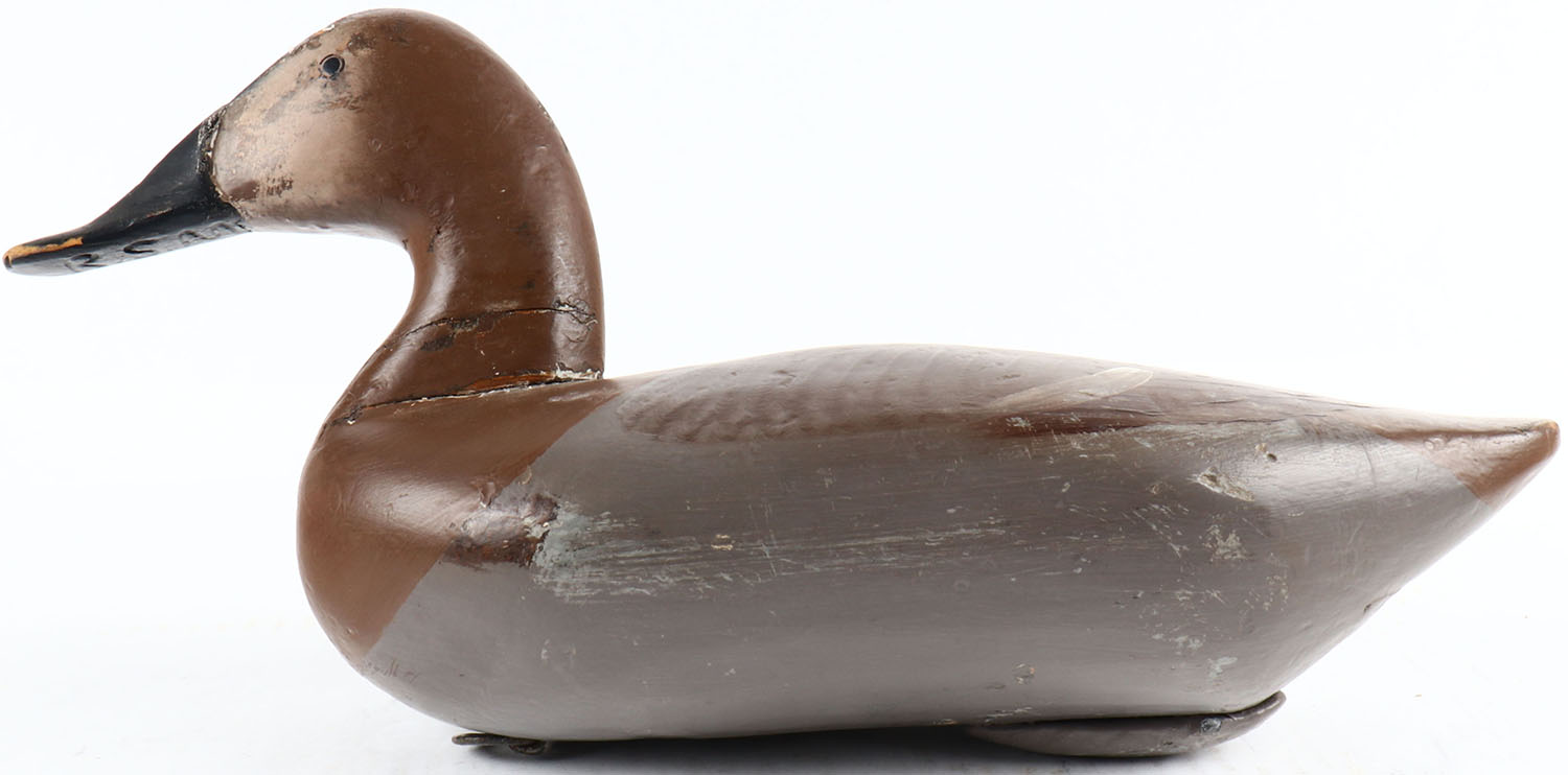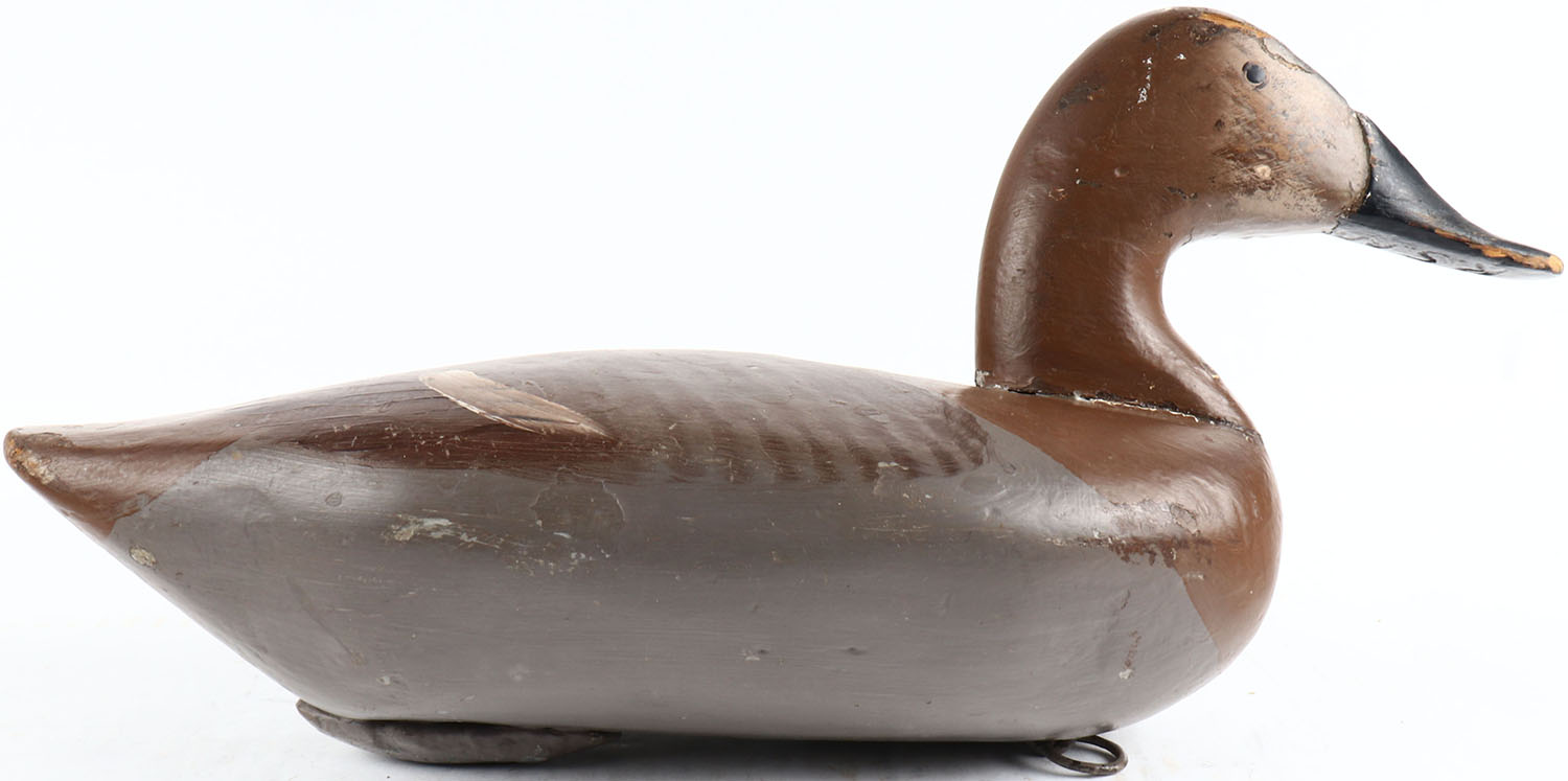 Canvasback Hen by Jim Currier of MD, PE, repaint shows some wear, solid wood, structurally excellent. Grade: Very Good ++ - Value: 60 to 150
